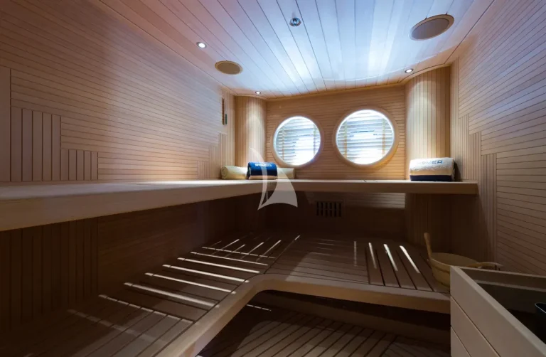 The fully equipped spa deck allows guests to unwind in true style, either by enjoying outstanding treatments or simply kicking back in the sauna.
