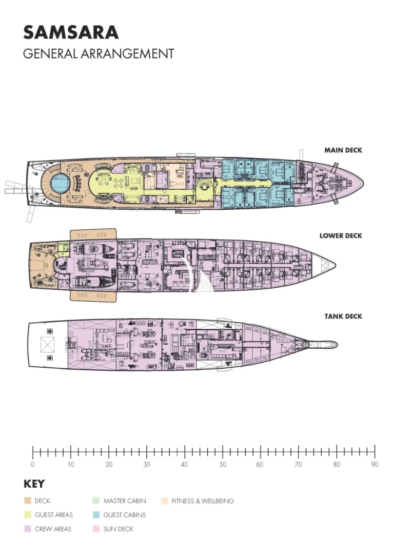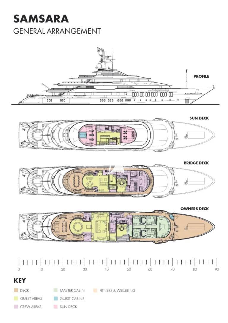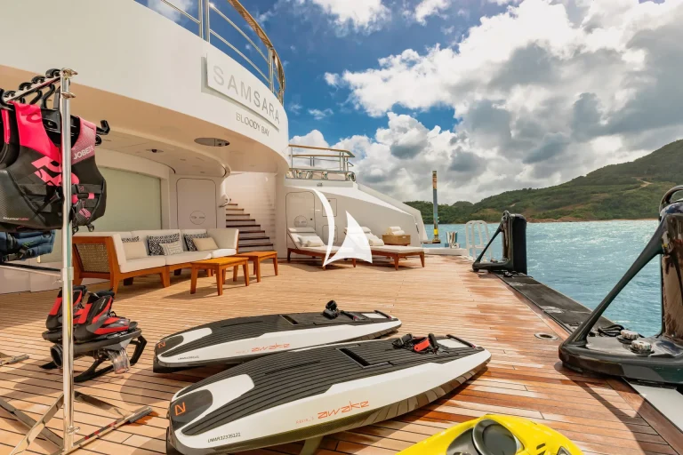 Rebirth. Perpetual motion. Infinite potential. The name Samsara connotes all of these things. The yacht Samsara provides them. At 88.5m, the opportunity for fun, relaxation, entertainment and activity are endless. With a gym, a wellness area, elevator, swimming pool, large beach club and fun-packed toy selection, Samsara sits in the top tier of yacht charter. The beautifully arranged, high-quality finishes you would expect from such a yacht are breathtaking. But Samsara doesn’t just offer next-level luxury and masterful design; step on board and there’s an unquantifiable feeling that permeates the spaces. It’s warm and inviting. A home away from home.
