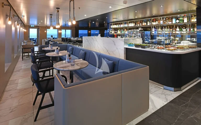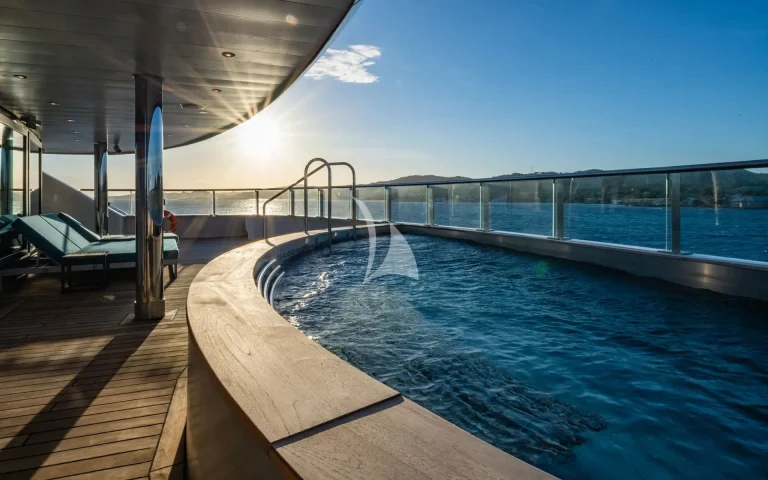 On board the yacht, a wealth of amenities are available including a spa, cinema, and fitness centre, as well as numerous social areas. Head chef Tom Götter is known for his flavourful, inspired dishes and can create a completely personalised menu based on guest preferences.