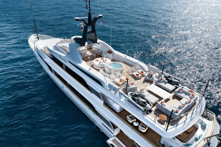In 2022, SOLAFIDE undertook an incredible refit that saw her interior and exterior entirely redesigned. With all new furnishings, layouts, engines and stabilisers, SOLAFIDE can safely be named as a gold medal worthy charter yacht. SOLAFIDE can accommodate up to 12 guests in 6 beautifully appointed cabins, and is looked after by a crew of 12.