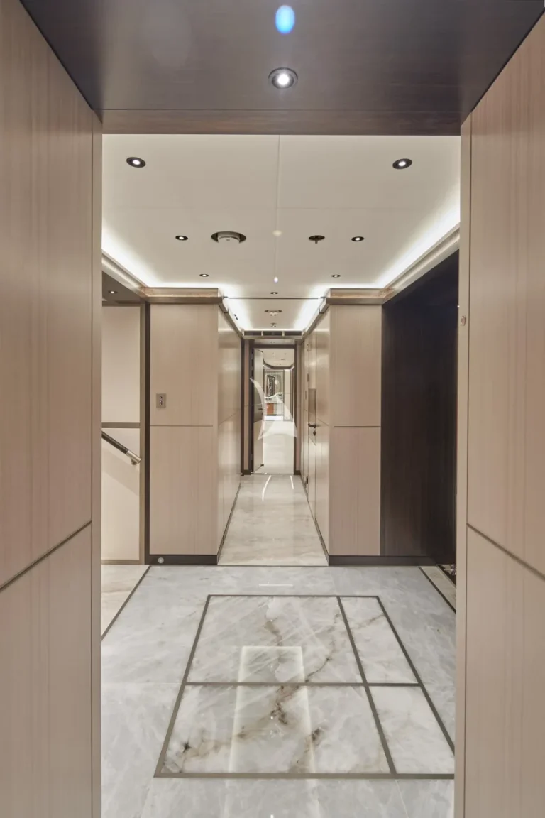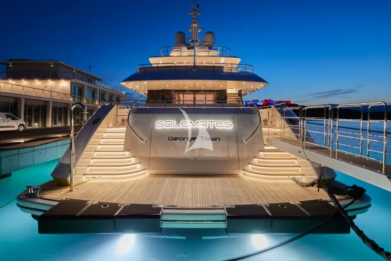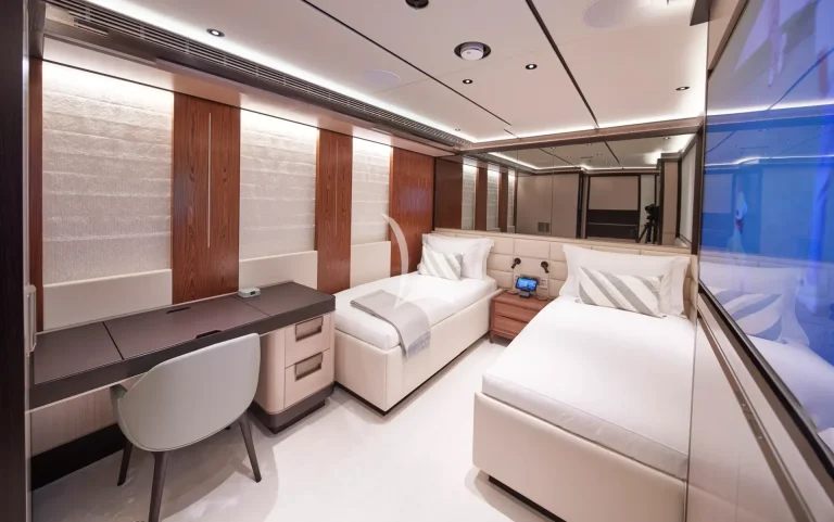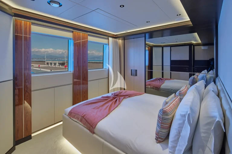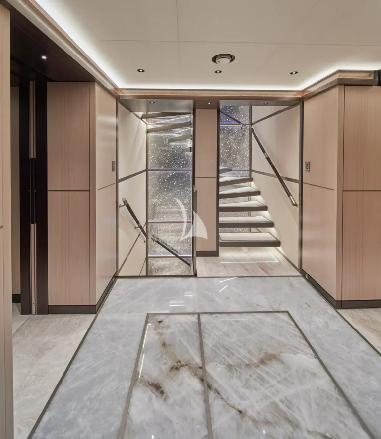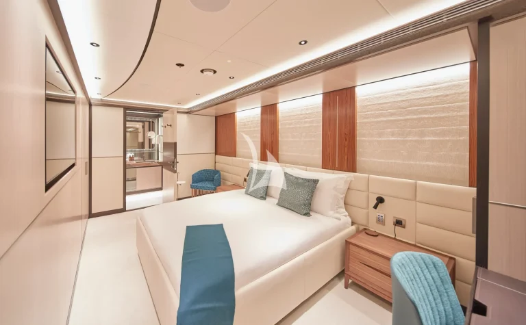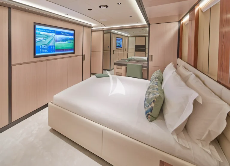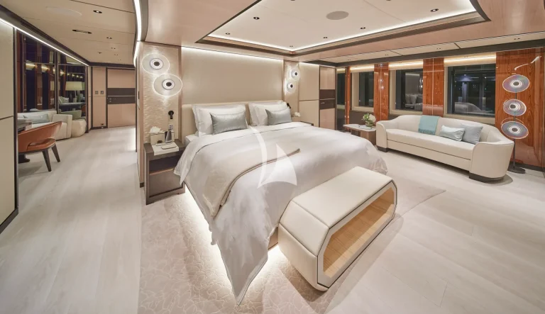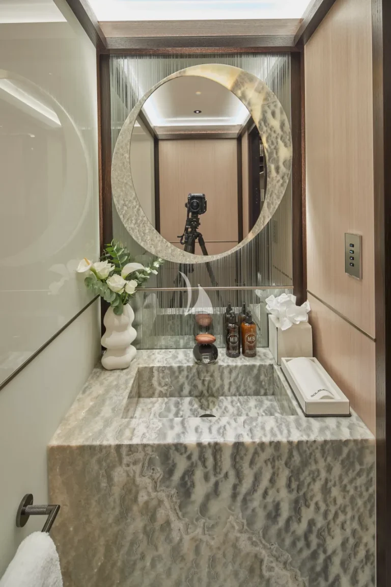 With a volume of 760 GT, Solemates accommodates up to 12 guests across six impeccably curated staterooms. The full-beam owner’s suite, located on the main deck, features his-and-hers master baths that converge in a striking central shower—an indulgent retreat designed for both style and comfort. Three generous VIP cabins—one situated on the wheelhouse deck and two on the lower deck—are complemented by two well-appointed twin cabins, each offering the same elevated experience. Every stateroom is thoughtfully designed with marble-clad en-suites, refined decorative accents, and premium toiletries, ensuring guests feel effortlessly cared for. Sophisticated lighting and modern finishes enhance the inviting ambiance, while advanced in-room technology elevates the experience further with the latest Starlink satellite connectivity for all digital entertainment seamlessly integrated. Guests can stay connected in comfort, wherever their journey takes them.