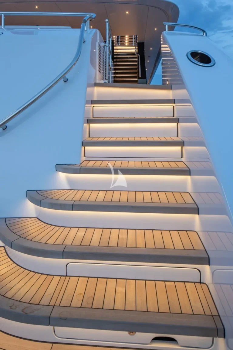 Powered by twin MTU engines, Solemates delivers a top speed of 15.5 knots and comfortably cruises at 13 knots. Her fuel-efficient Fast Displacement Steel Hull seamlessly blends performance with long-range capability. Equipped with advanced stabilizers both underway and at anchor, Solemates offers enhanced comfort in all sea conditions. Whether exploring the sun-drenched Greek Islands, the dramatic coastlines of Amalfi, or venturing to Sardinia and the Balearics, she ensures effortless passage with exceptional poise and tranquility.