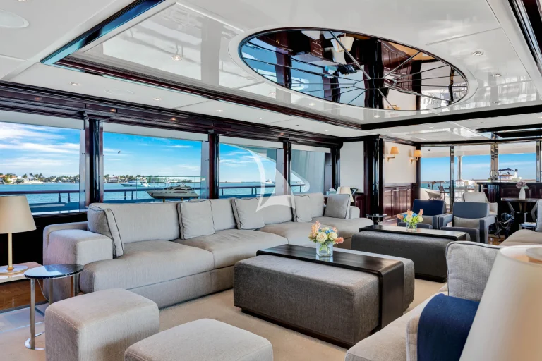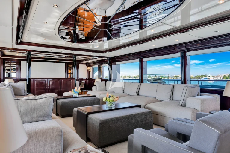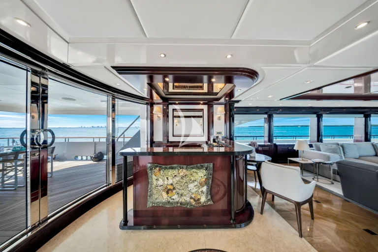 Spacious aft salon with a large bar, ideal for cocktail hours and socializing