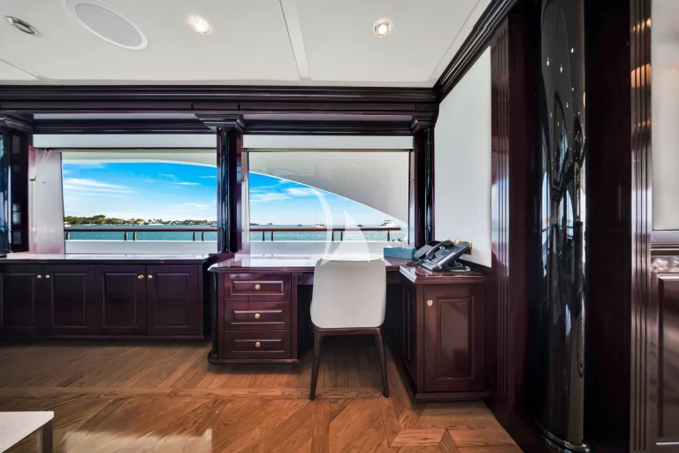 Unique layout with the master suite located on the bridge deck, featuring private access to the exterior deck—perfect for enjoying panoramic views in total privacy
