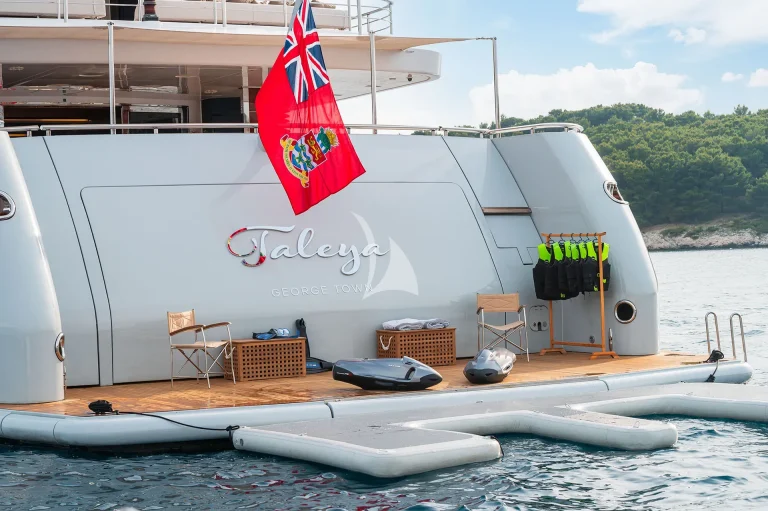 TALEYA is accompanied by a brand new Opus 12 chase tender and carries a 23-foot jet tender along with an enormous array of water toys. The selection includes Jet Skis, SeaBobs, water skis and wakeboards, canoes and stand-up paddleboards, as well as various inflatables.