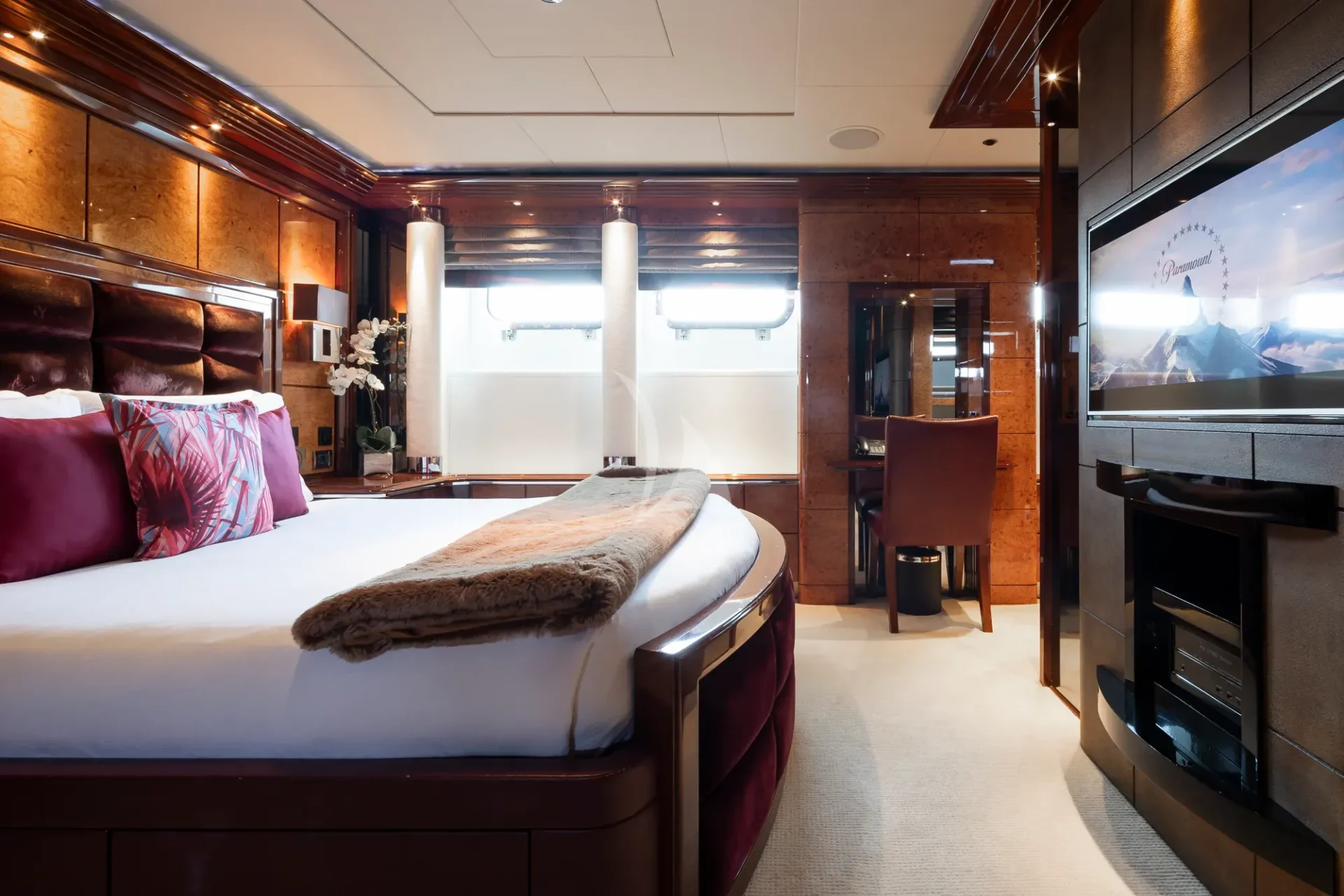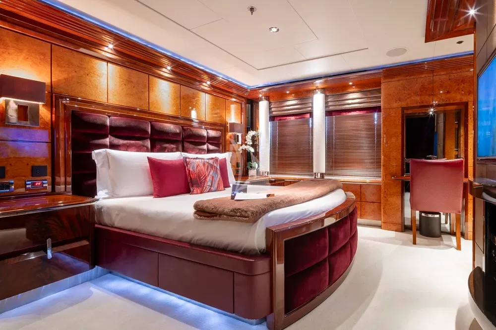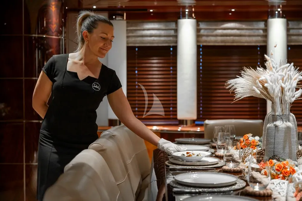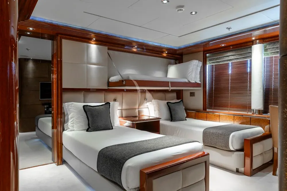 The yacht’s flexible accommodation layout for 12 guests comprises of 4 double cabins and 2 twin/double cabins (each twin cabin offers a pullman berth). These cabins are decorated in a wide range of materials and styles, from Asian to Art Deco.