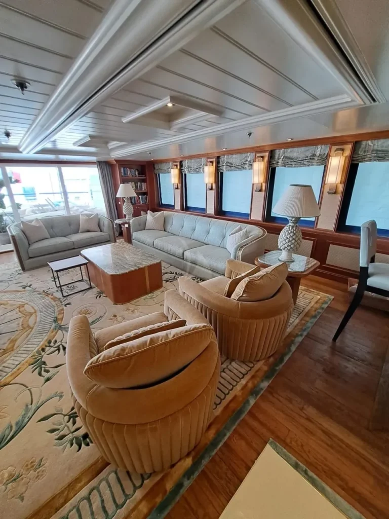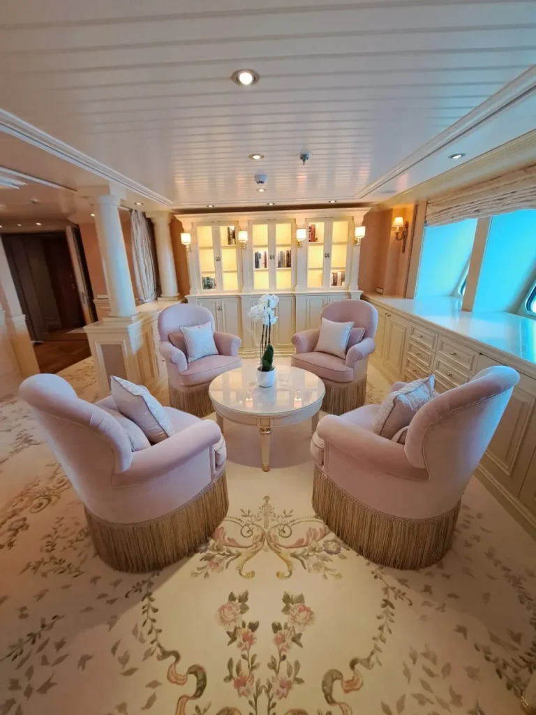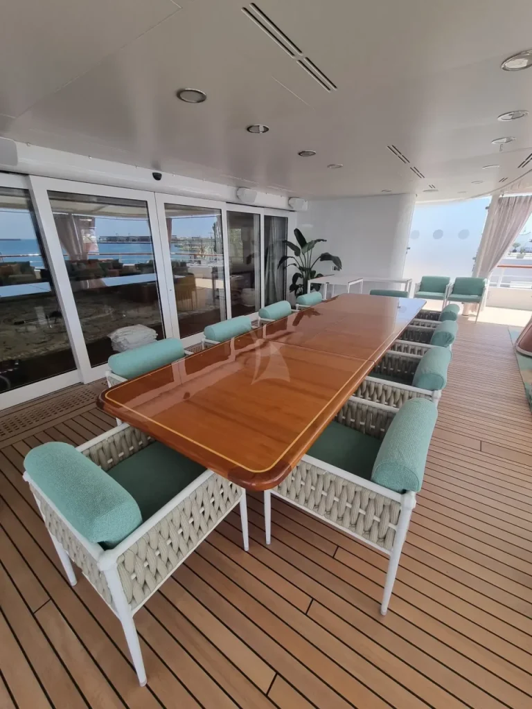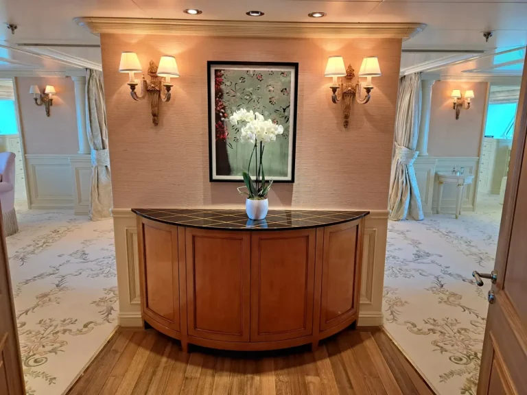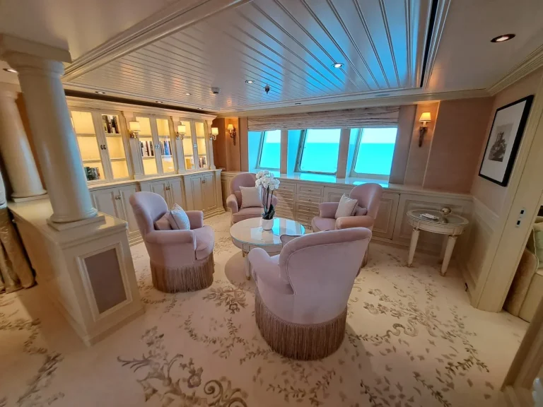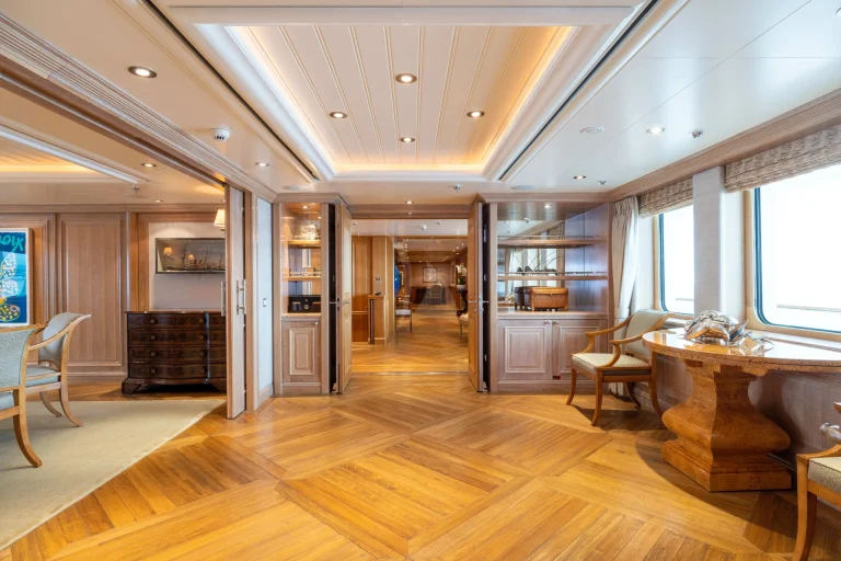 The main deck also hosts the cinema which has been replaced during the last refit, as the entire audio visual, IT system and infrastructure. The new entertainment system is provided by YachtCloud on their Omniyon platform, controlled via iPads.