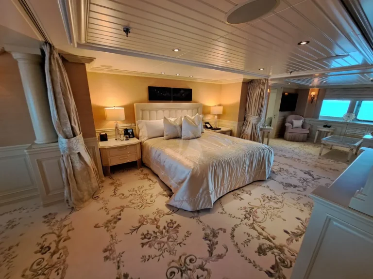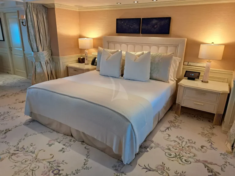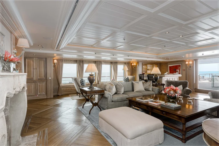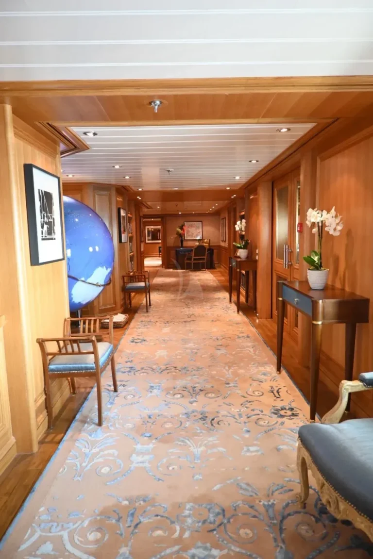 Including the owner’s apartment and the two staterooms on the main deck, TATOOSH offers 11 staterooms for up to 12 guests + 7 supernumeraries. Six guest suites below decks open on to the main corridor which is elegantly paneled in limed oak.