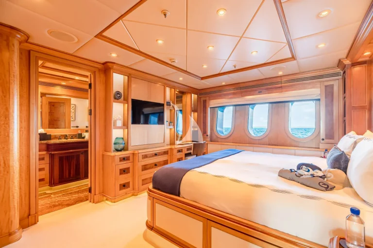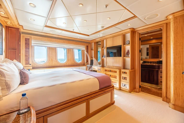 UNBRIDLED is a proven global cruising platform and comes with an enviable charter record. Her six adaptable cabins include a full beam master on the main deck with a private study, a convertible cabin also on the main deck and four additional guest cabins on the lower deck. Two are VIP cabins with double beds while the other two cabins have double beds along with a single bed and pullman. All guest cabins have en-suite bathroom facilities. In total the yacht can accommodate up to 16 guests comfortably.