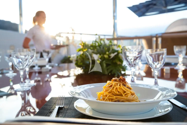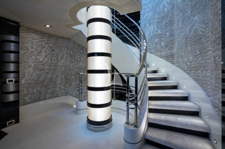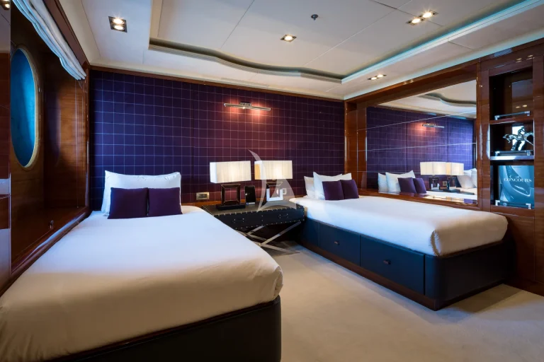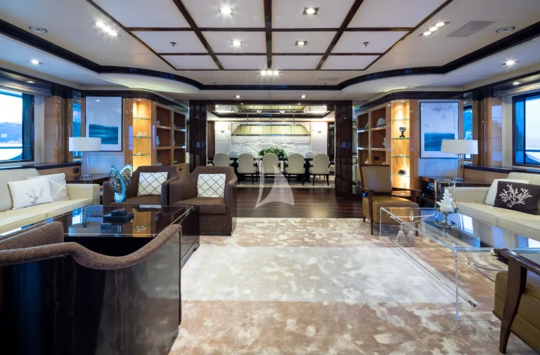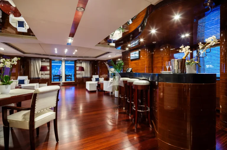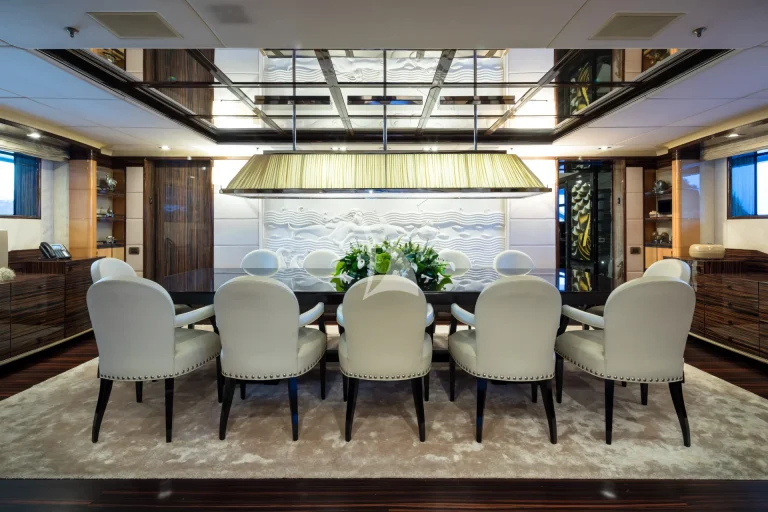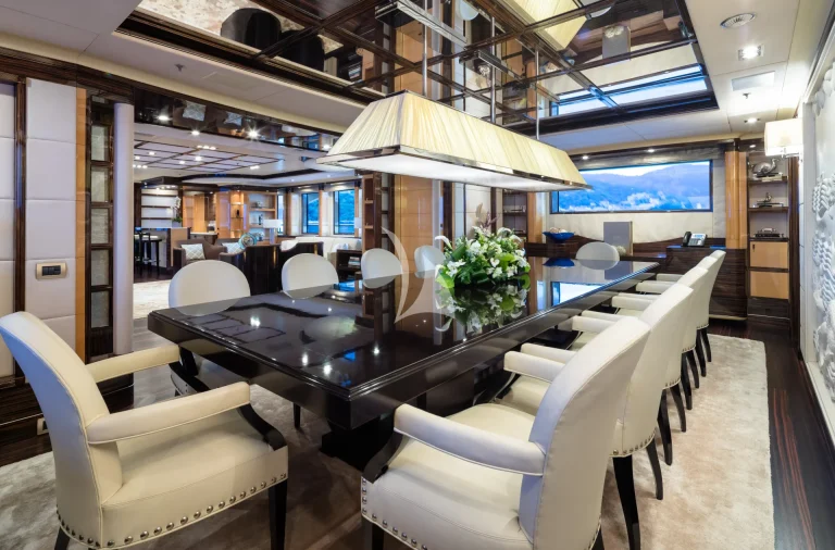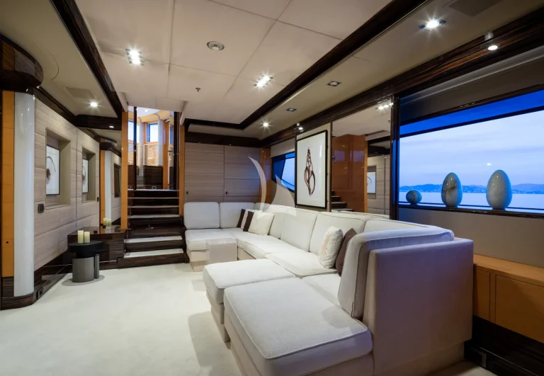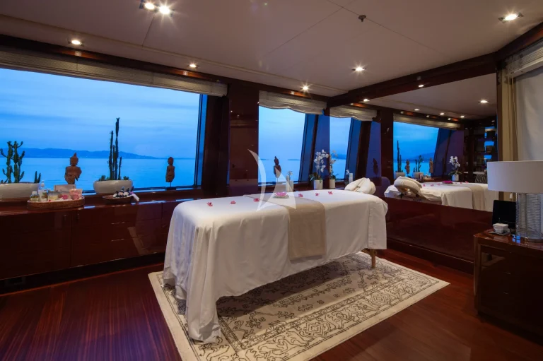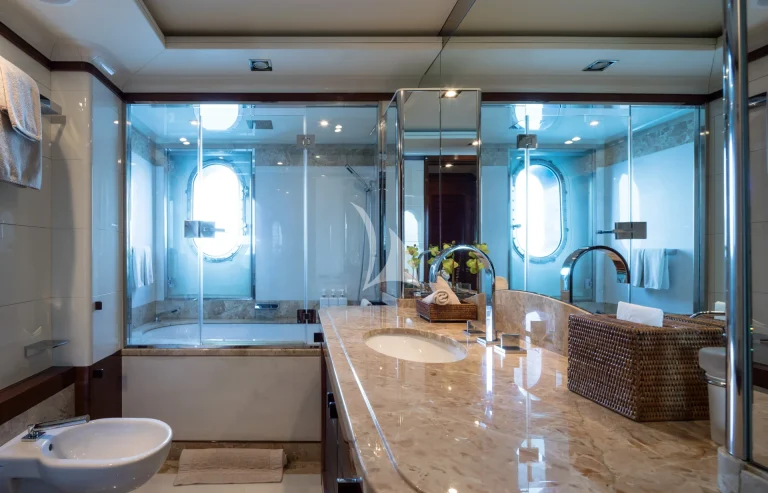 A VIP suite on the upper deck can double as a dedicated spa and wellness space depending on the number of guests on board. On the lower, there are two generous double cabins and two twin cabins can convert to doubles, making VISON the perfect for large families or flexible groups. Each cabin is finished in a palette of warm woods, hand-selected marbles, and soft lighting.