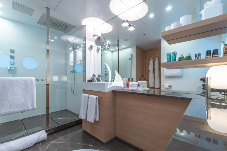 Her crew is dedicated to making every day on board amazing, with a particular flair for beach set-ups and watersports days. Zero speed stabilisers for comfort and a toy locker packed with Sea-Doos, SeaBobs, sailing dinghies, fliteboards, transparent kayaks, paddleboards and a host of tow toys, and you have an unbeatable package.