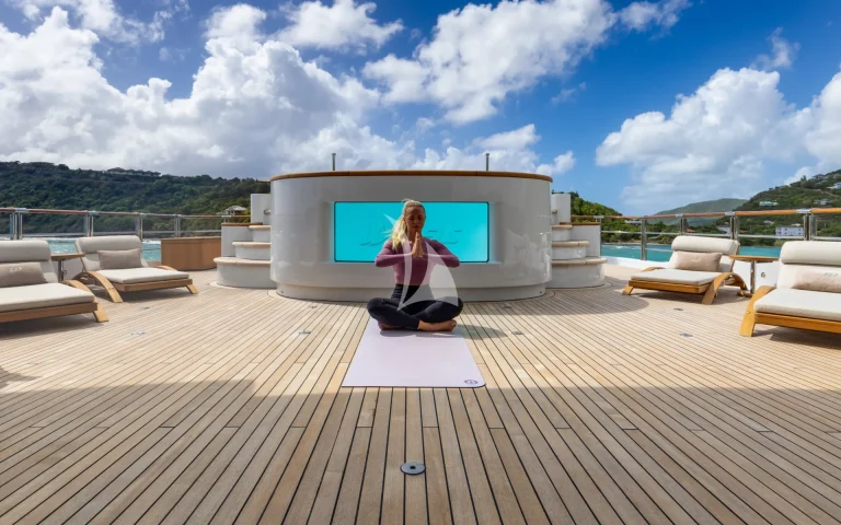 – Deck crew are all experts in water sports: wakeboard, kitesurf, sailing, diving, yoga, and fitness instructors on board.
