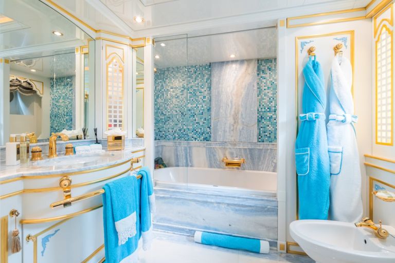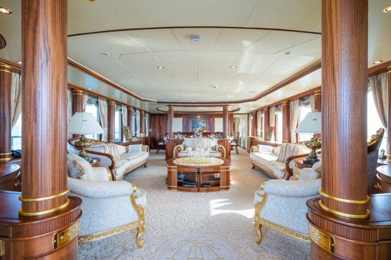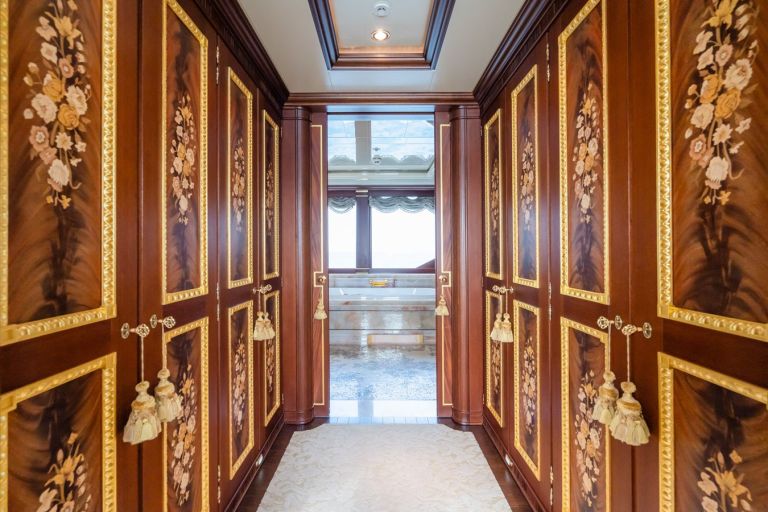 Her elegant interiors were designed by renowned designer Cristiano Gatto designed The handcrafted interiors are a testament to the meticulous attention to detail, featuring precious materials such as onyx, Sicis micro-mosaic, and custom silk carpets.