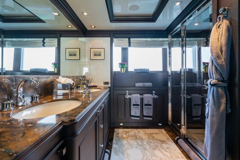AQUAMARINA boasts two master cabins with the main deck cabin showcasing contemporary design, while the cabin on the bridge deck offers an indulgent experience with its amazing terrace.