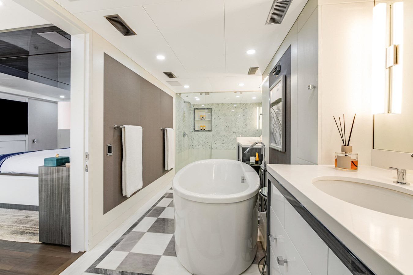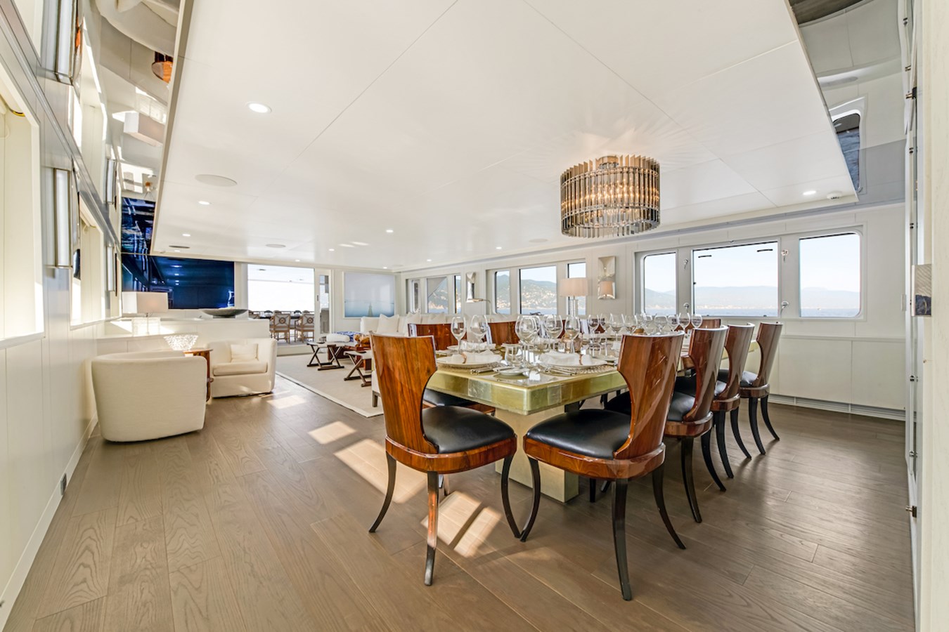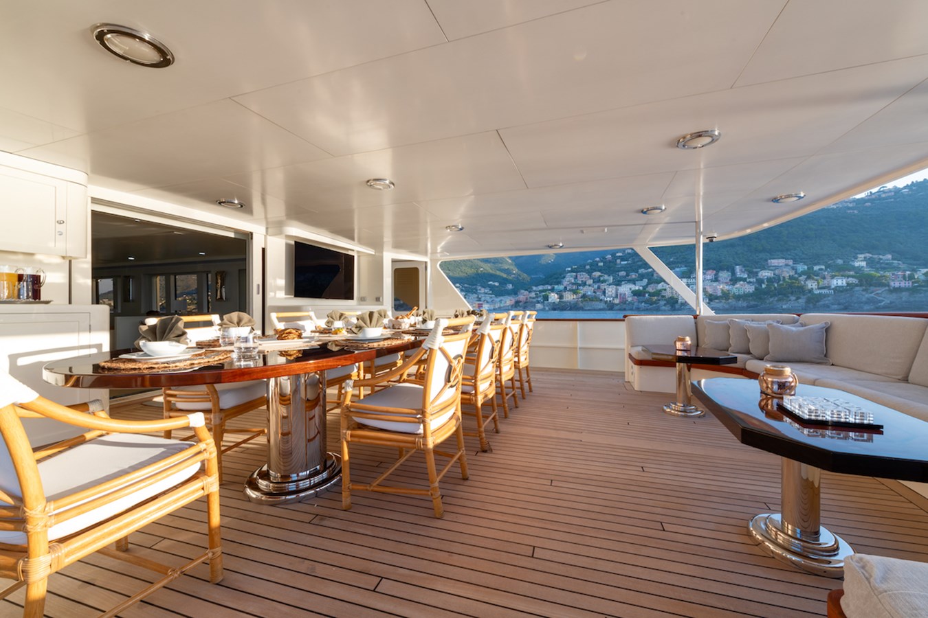 Highlights of her design include a sun deck with Jacuzzi, a social and versatile upper deck space, an al fresco dining area on the bridge deck, and accommodation for 12 guests in six cabins.