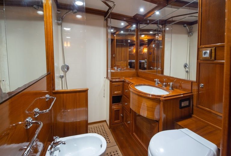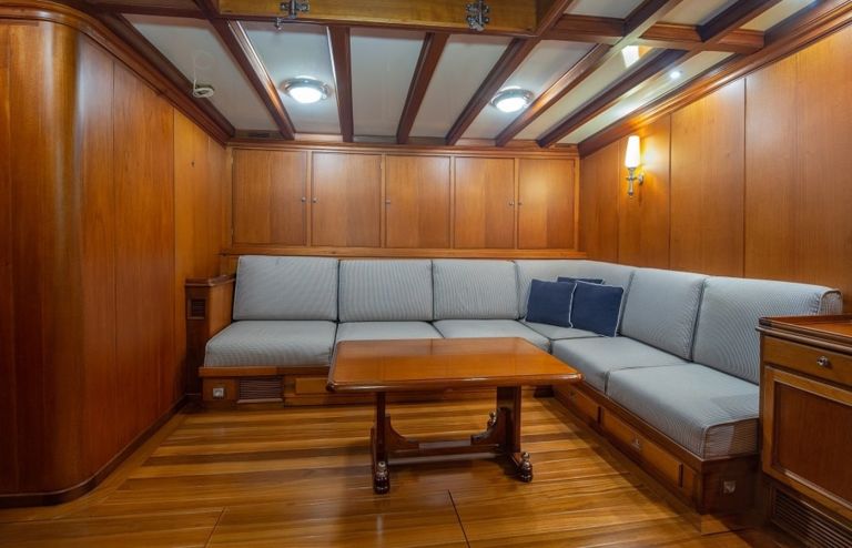 She is powered by CAT engines of 322 hp each giving her a maximum speed of 11 knots and a cruising speed of 10 knots. The sailing yacht can accommodate 6 guests in cabins and an exterior design by Charles E. Nicholson.