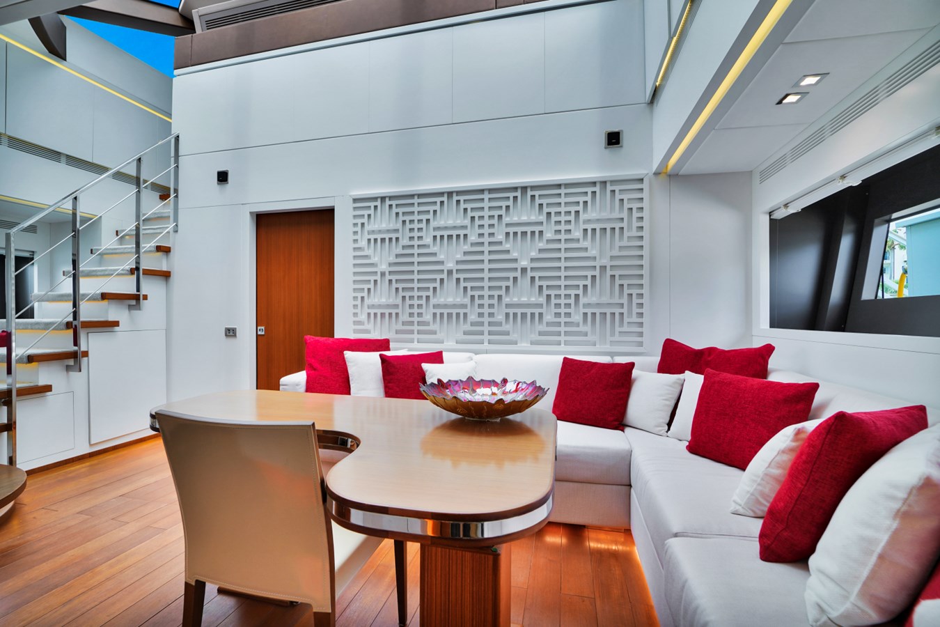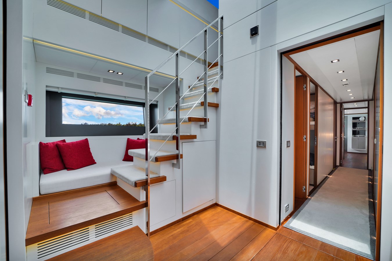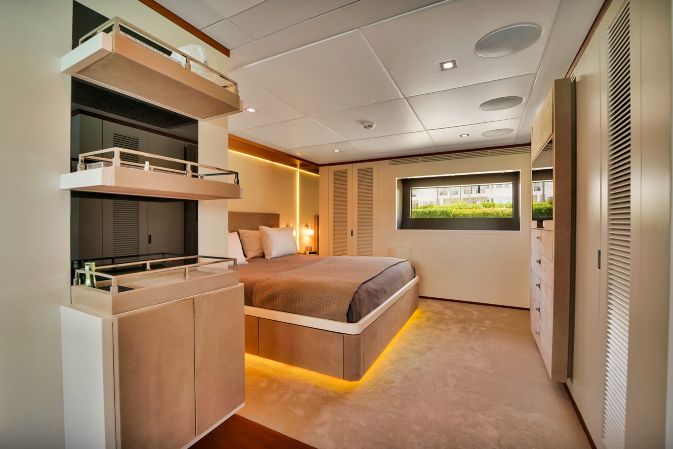 Accommodating up to 12 guests, the AB 116 is completely custom from her interior layout to the exteriors. Large windows create a spacious and airy feel and a pilot house, discreetly separated from the salon, offers 360° visibility of the exterior from any point on the main deck.