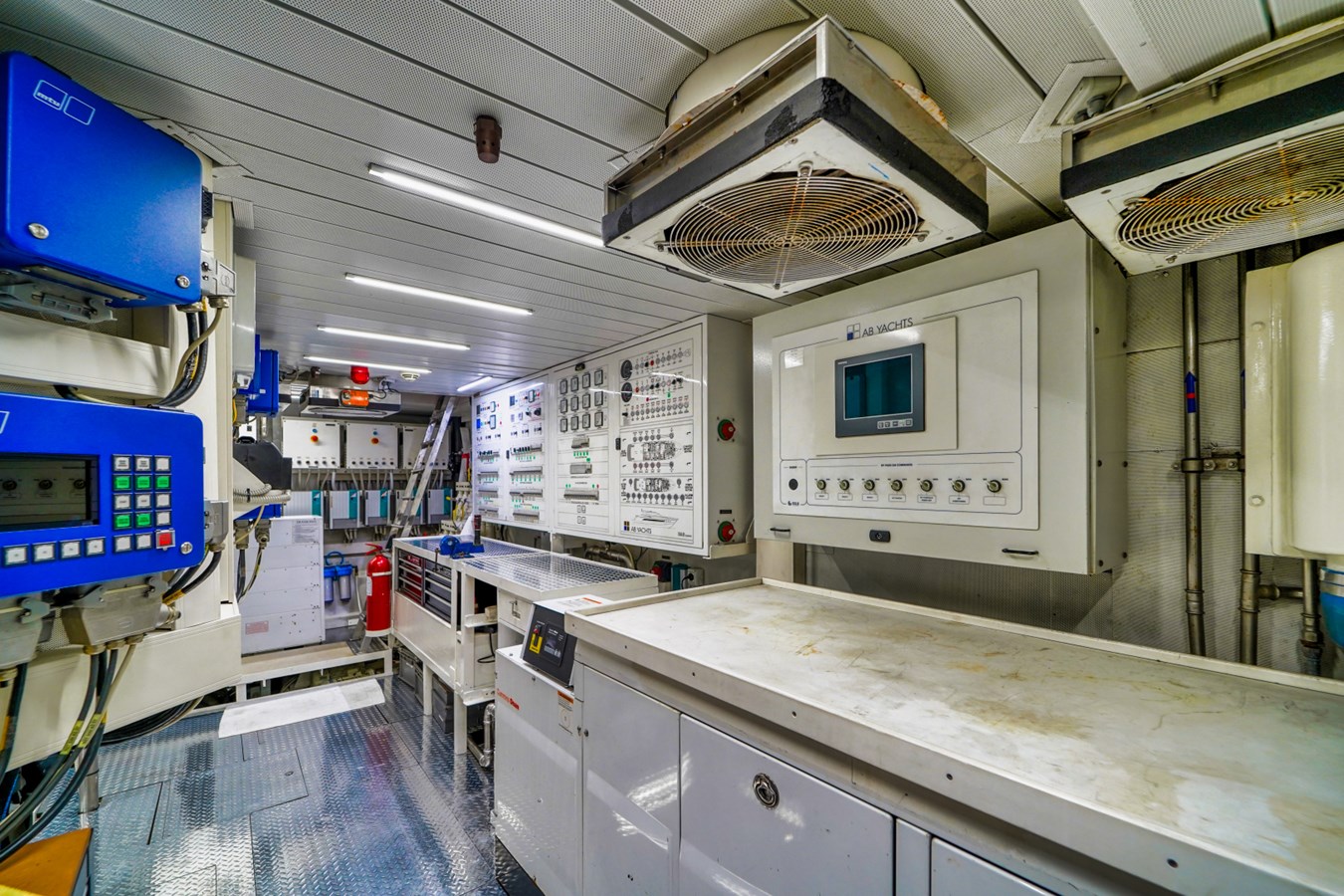 Using materials and technology originally developed for the aerospace industry, the ground-breaking 36-metre AB 116 is both light and strong. With three MTU 16V2000 M93CR engines, each producing 2400 HP, and three MJP waterjets, the AB 116 reached top speeds of up to 45 knots when new offering the almost complete vibration-free experience the Massa-based shipyard is now renowned for.