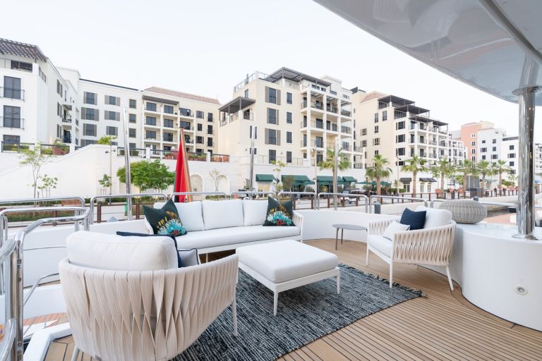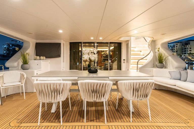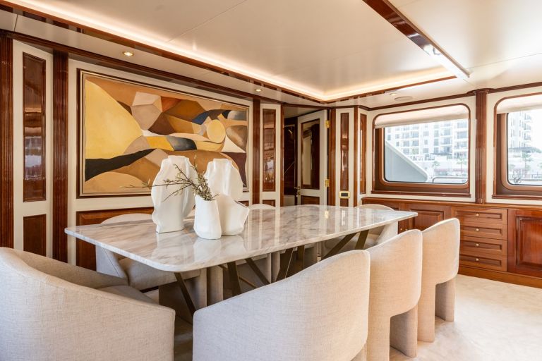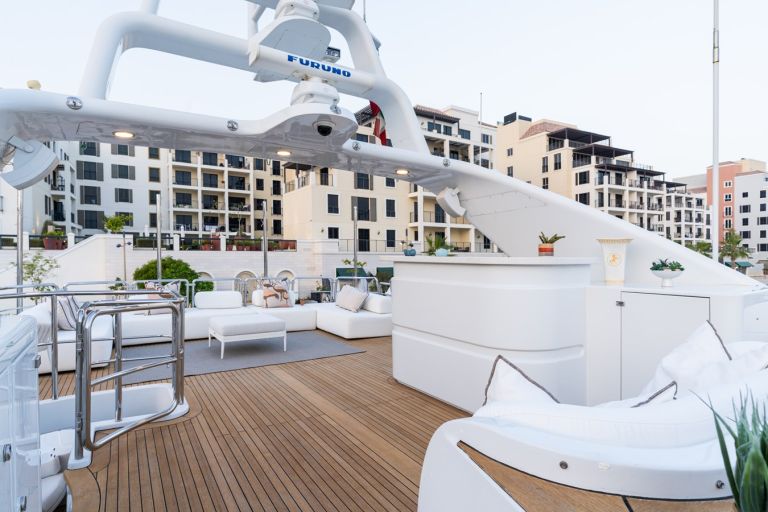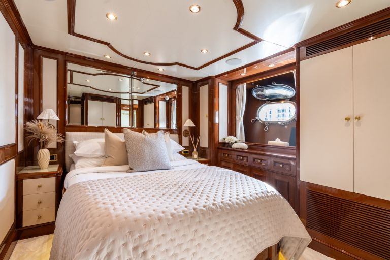 DXB offers accommodation for up to 10 guests in 5 suites comprising 1 owner cabin, 2 VIP cabins, 2 twin cabins. She is also capable of carrying up to 7 crew on board to ensure a relaxed luxury yacht experience.