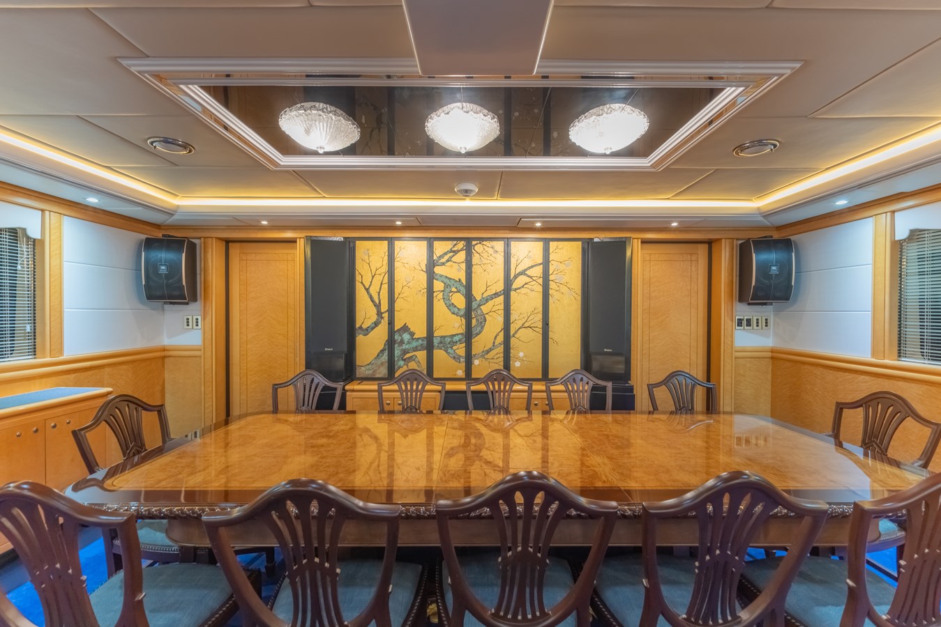 Inside, Fortune Elephant is crafted for both relaxation and entertainment. She can accommodate up to 12 guests in 6 suites, with 5 crew members ensuring every need is met. The yacht’s interior, finished to the highest standards, features expansive living areas, sophisticated entertainment systems, and amenities such as air conditioning and a teak deck for comfort.