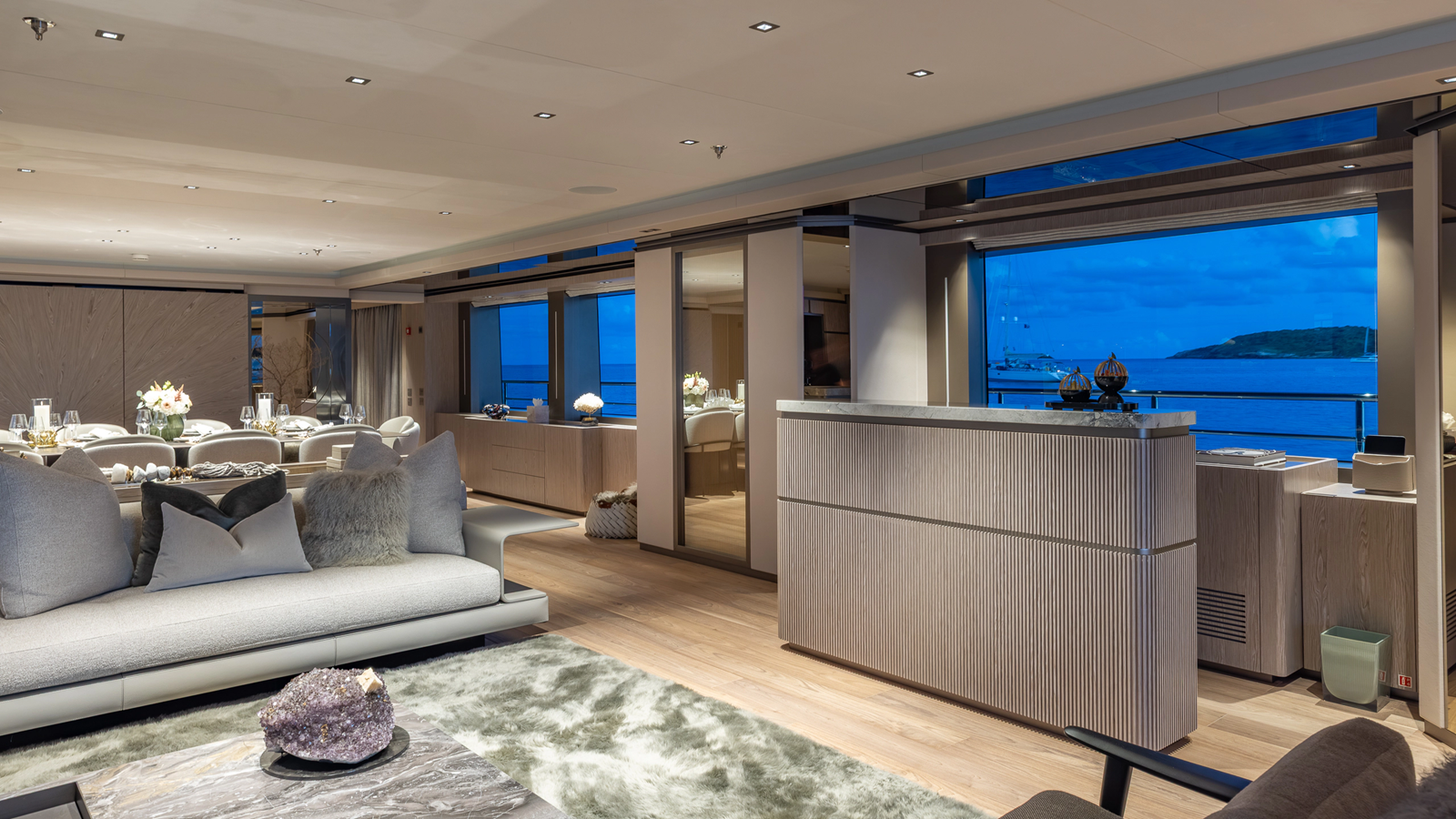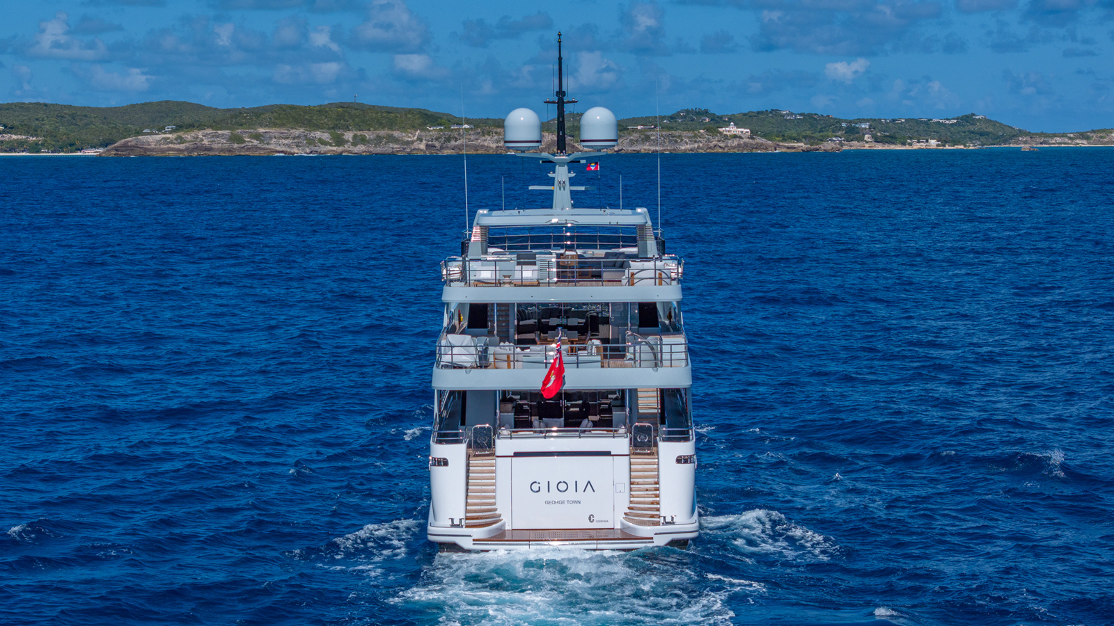 From her distinctive gunmetal-grey paint scheme to her sleek, modern interiors, GIOIA offers outstanding entertaining spaces and accommodation for up to 12 guests in five spacious cabins, all within an impressive 499GT interior volume.