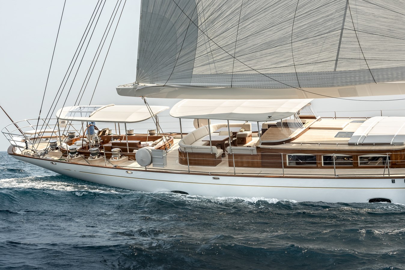 With a free suspended spade rudder and a similar righting moment to that of a J-Class, she is a powerful and exciting sailing yacht.