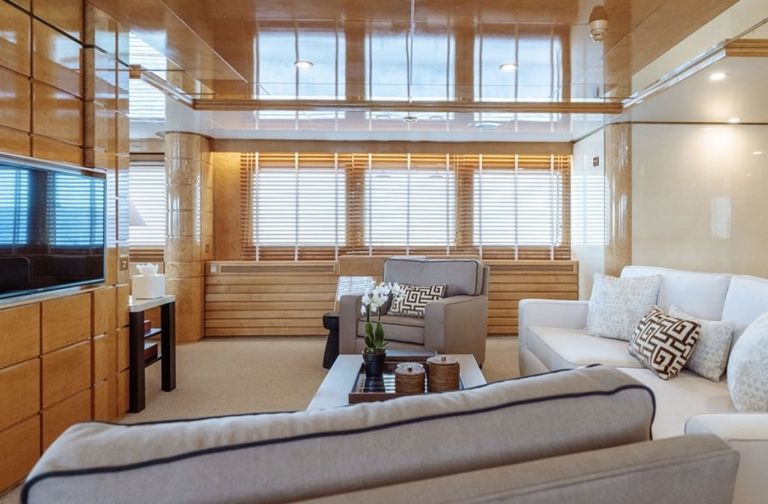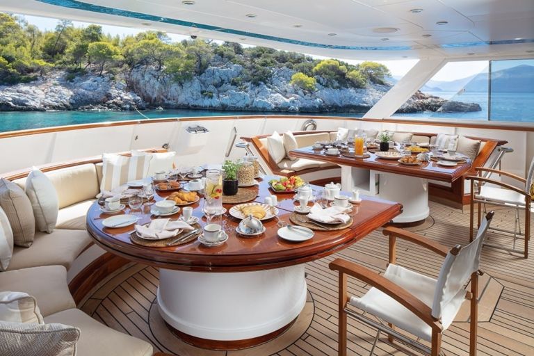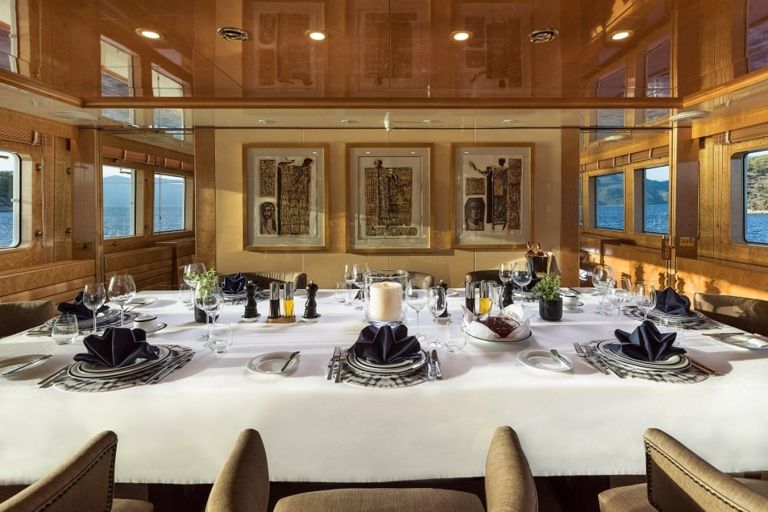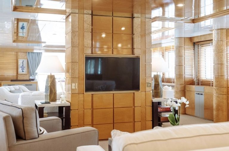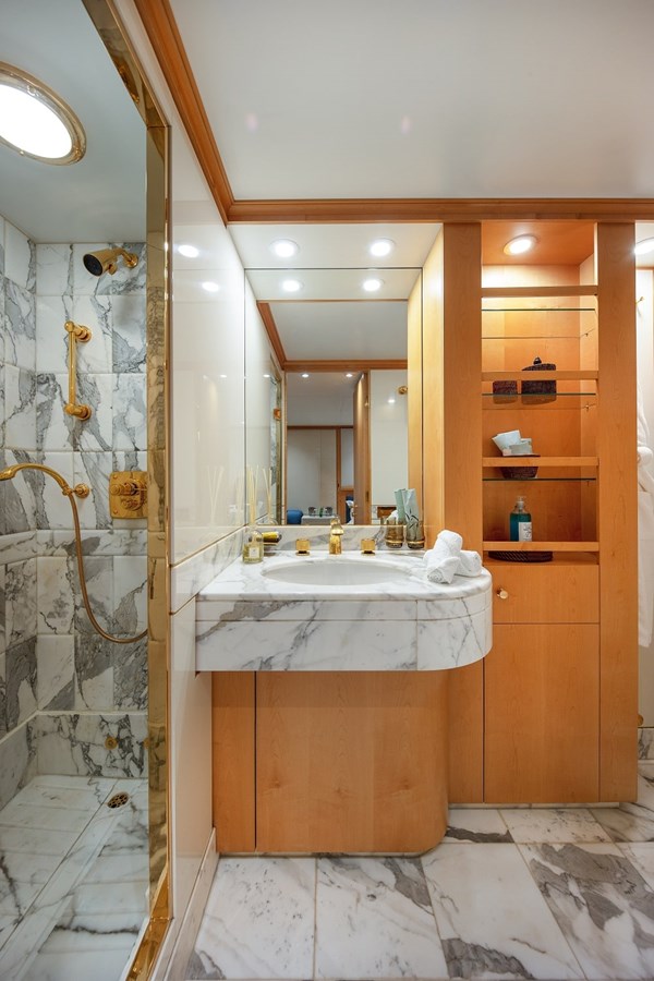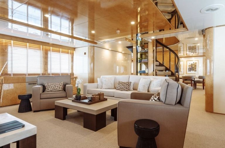 The 2022 refit saw significant updates, including a complete technical overhaul of the engines, generators, stabilizers, AC system and new navigational equipment in the bridge. A new galley was fitted and new upholstery throughout guest areas, including a full conversion of a twin cabin to double VIP.
