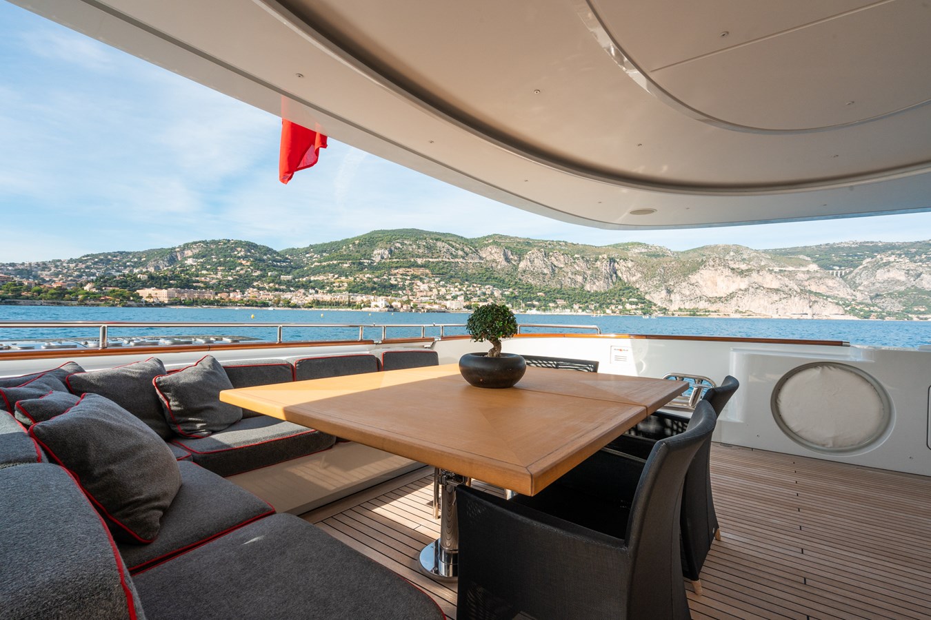 Big social gatherings aren’t a problem in this masterpiece. With an elegant saloon, a fully equipped professional-grade galley, and generous outside deck spaces, entertaining guests on the ISA 500 is always a delight. The top sun deck flaunts a bar, a grill, and a whirlpool tub, offering an envious space for lounging, alfresco dining, and soaking up the sun.