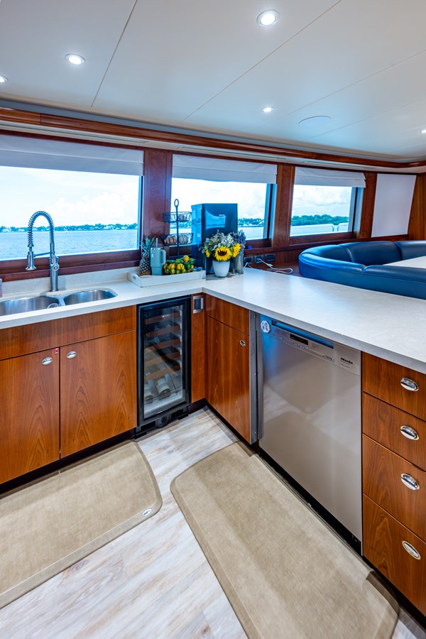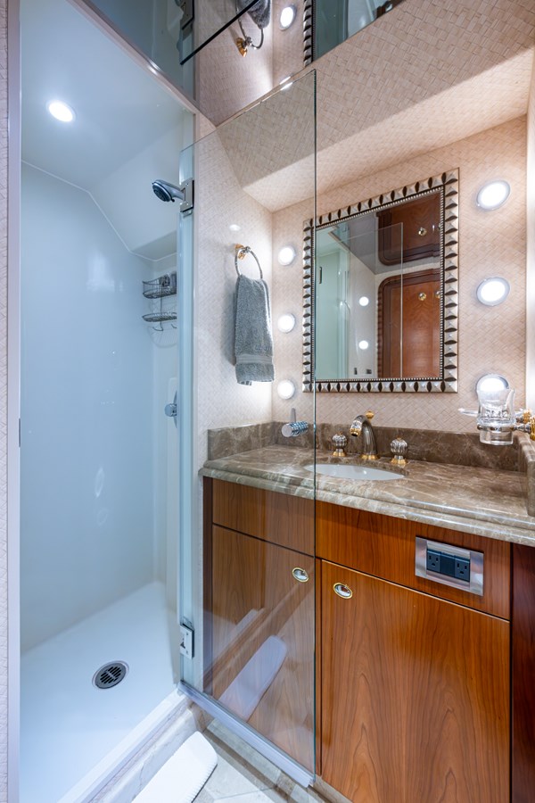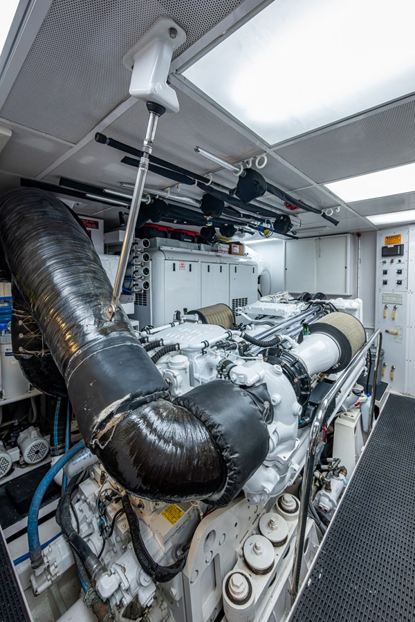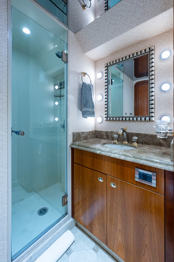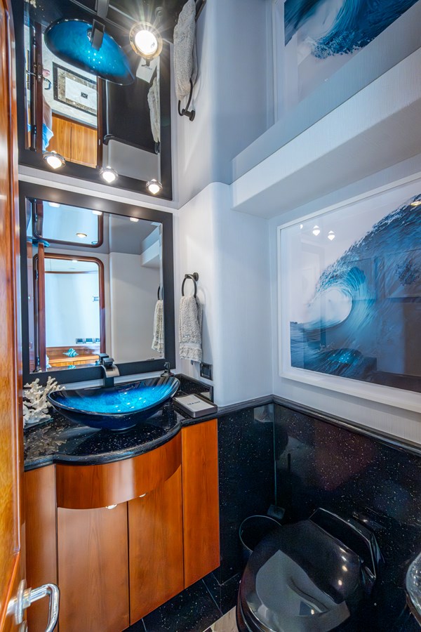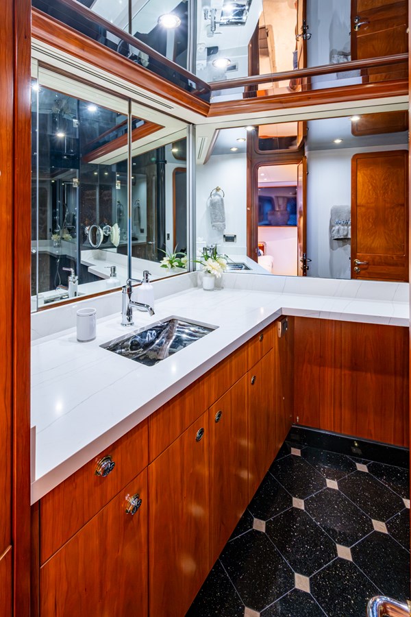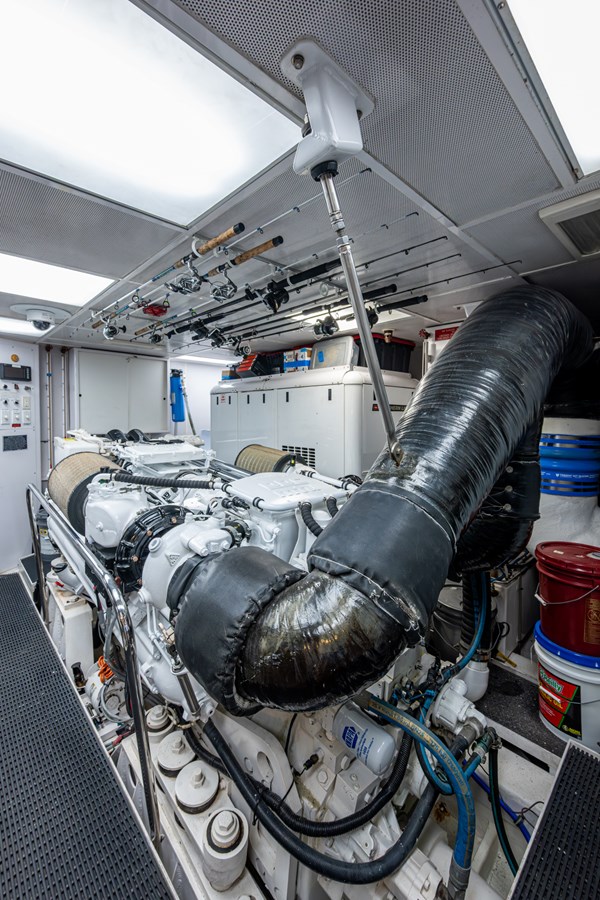 In 2025, she underwent a yard period at Safe Harbor Rybovich, receiving a full bottom job, stabilizer service, windlass rebuild, bow thruster overhaul, and davit paint. Upgrades included new exhaust risers, hot water heater, master cabin wall paneling, and refreshed countertops in the owner’s head.