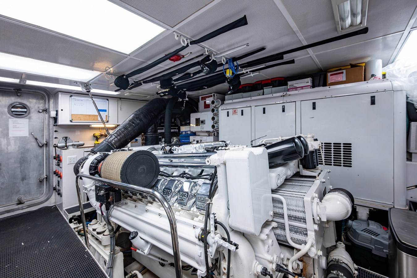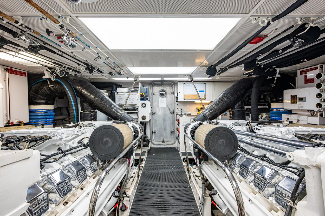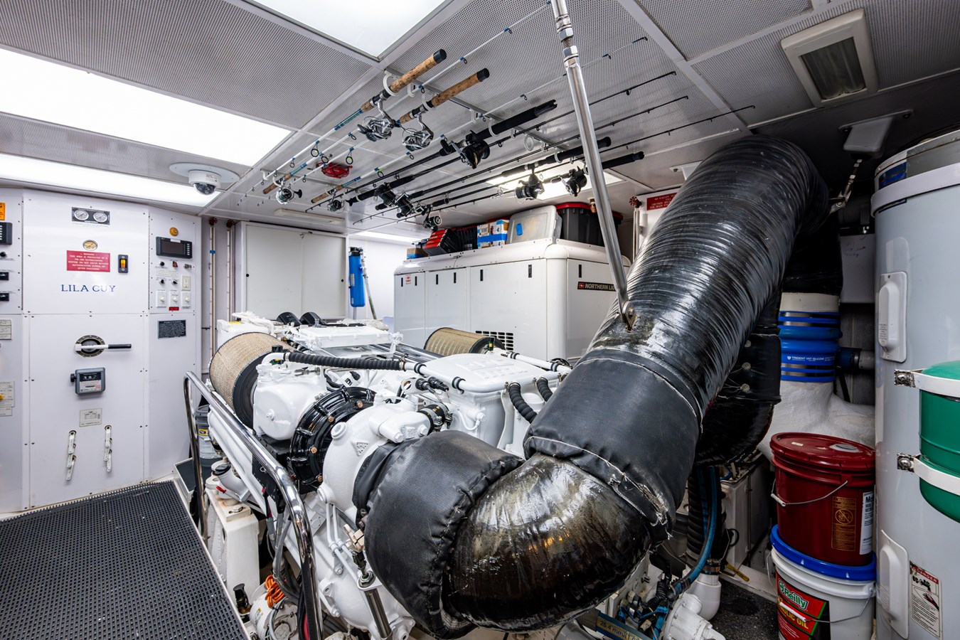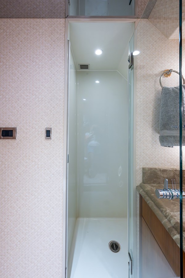 In 2025, she underwent a yard period at Safe Harbor Rybovich, receiving a full bottom job, stabilizer service, windlass rebuild, bow thruster overhaul, and davit paint. Upgrades included new exhaust risers, hot water heater, master cabin wall paneling, and refreshed countertops in the owner’s head.