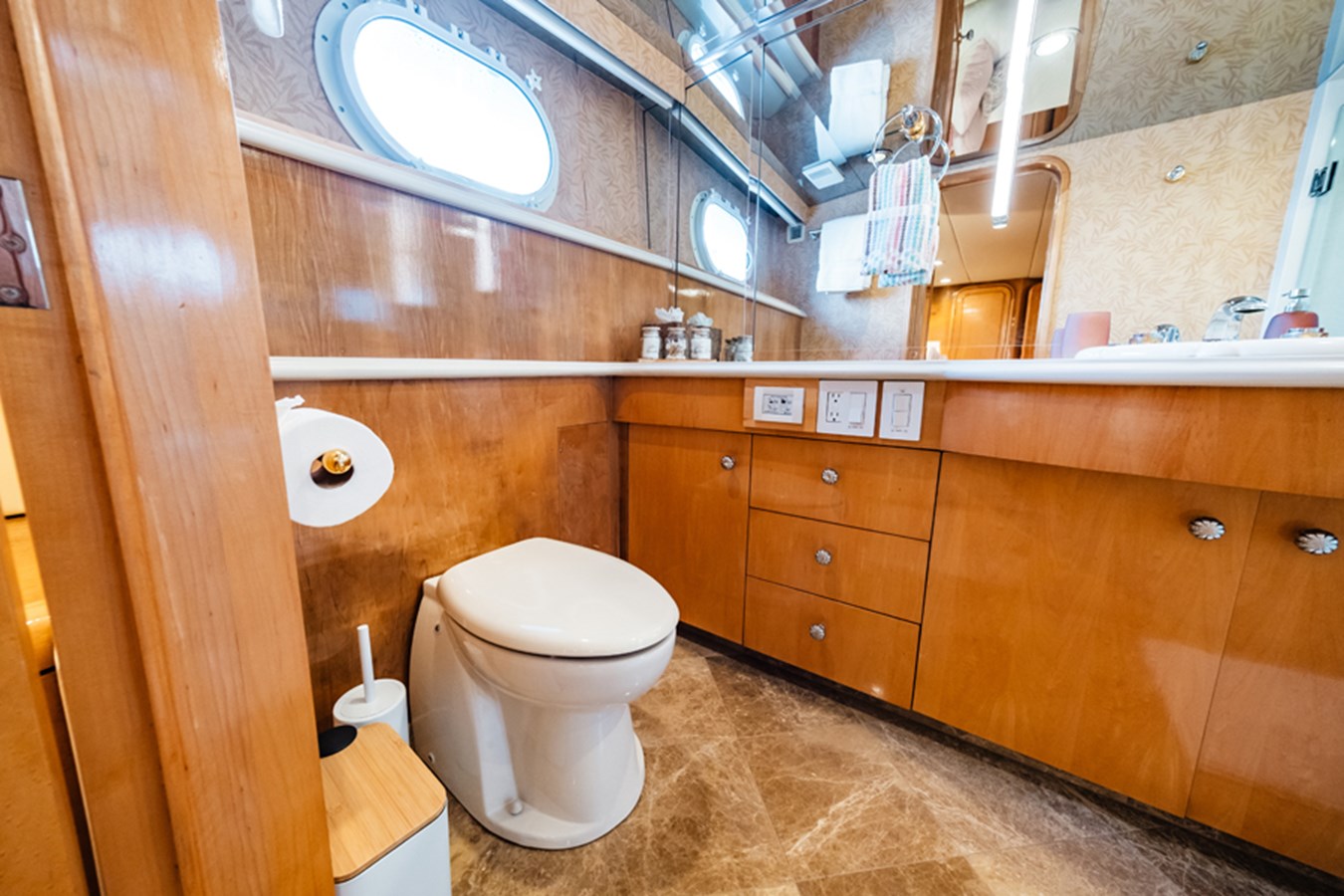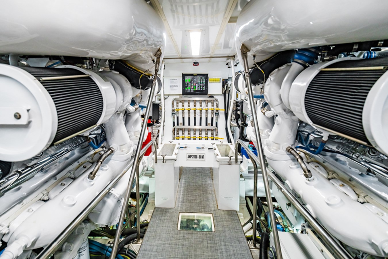 She has the standard five cabin arrangement found in a 40 meter Tri-Deck but sports a brand new interior from the Fall of 2024. The FB layout was dramatically improved under the current ownership with improved access, a walk behind bar and a spa tub.