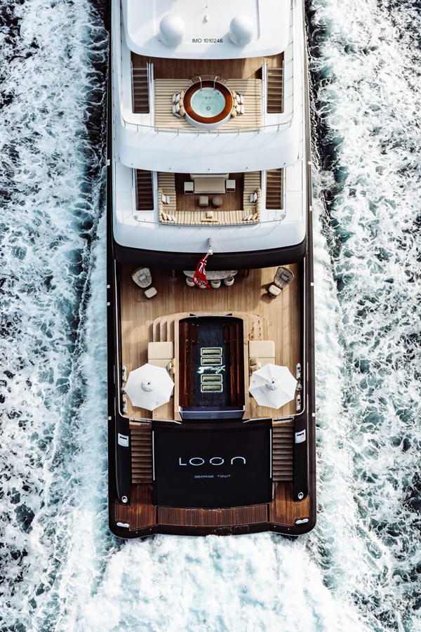 LOON is a 221’ Icon motoryacht with 6 decks and 7 staterooms.