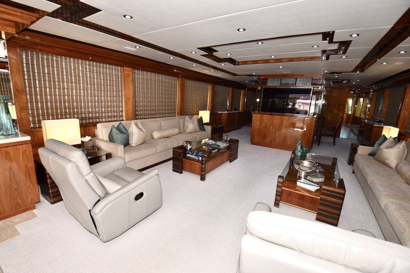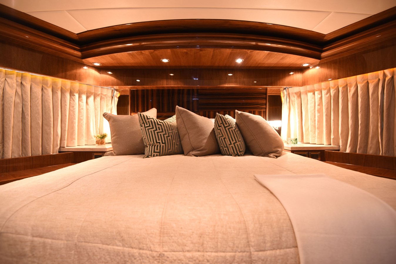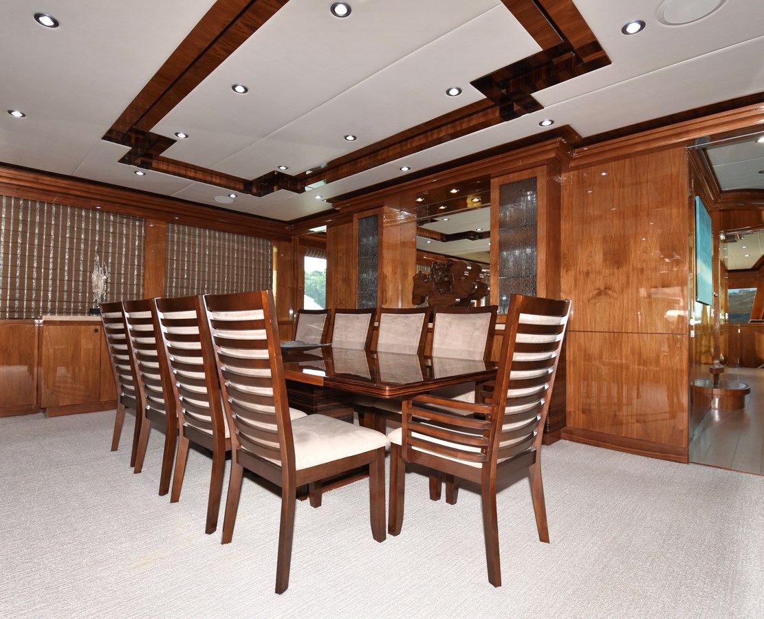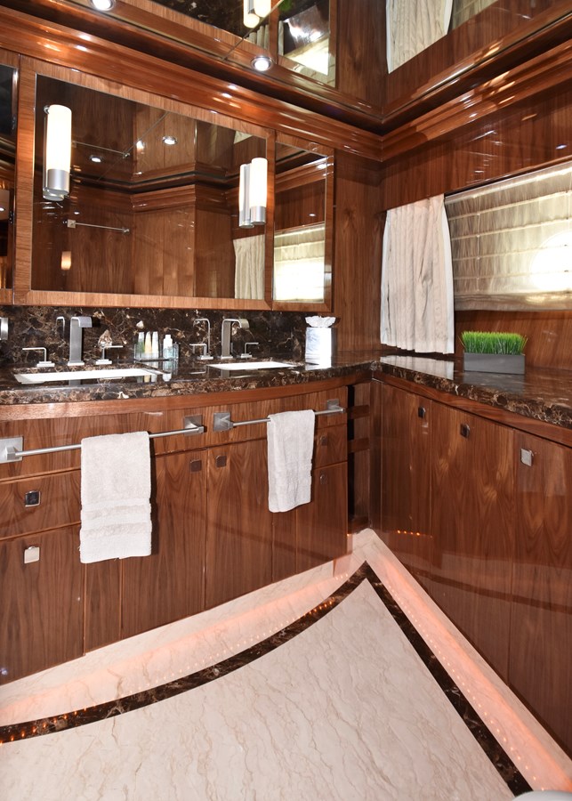 This 2013 Hargrave 125 Raised Pilothouse “Mesmerize” is built for those who love to entertain on a grand scale. With over 5,000 square feet of living space and four king-sized guest suites, it’s perfect for both personal use and charter. Every room has a larger-than-expected feel, offering luxurious accommodations for up to eight guests.