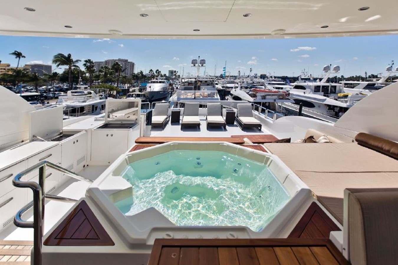 Built to Hargrave’s highest standards of quality and safety, this 125 Hargrave yacht comes with recent upgrades, including a Spot Zero watermaker, factory-serviced engines, and refinished teak decking. Plus, it comes fully equipped with a Boston Whaler tender and Jet Skis to maximize your on-the-water adventures.