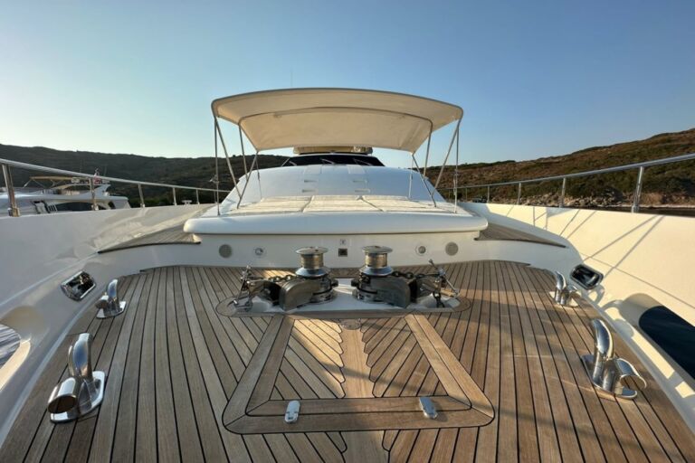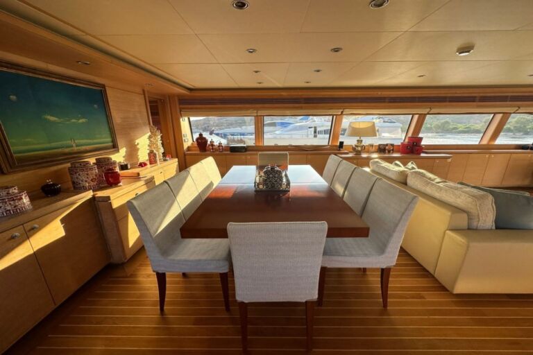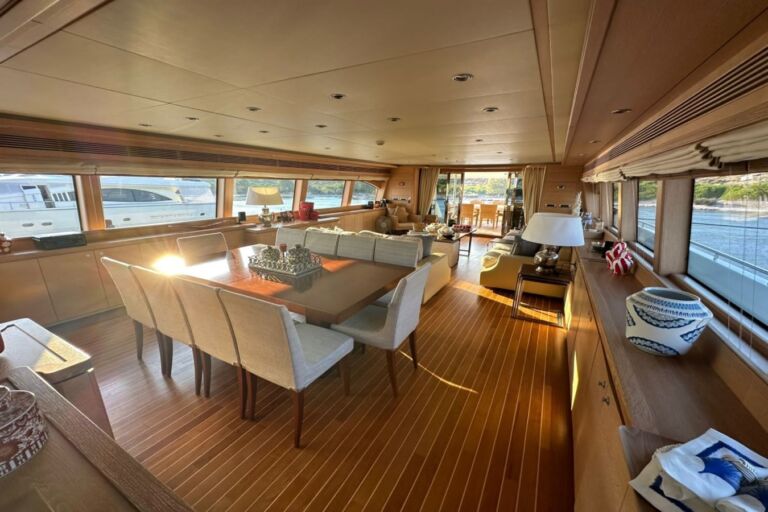 With a length of 34.16 meters and a beam of 7.08 meters, MISS ADO offers generous interior and exterior spaces crafted with meticulous attention to detail. Her elegant interiors—refurbished with new upholstery, lighting, and a complete design refresh of the salon, cabins, and flybridge—create a warm yet sophisticated ambiance.