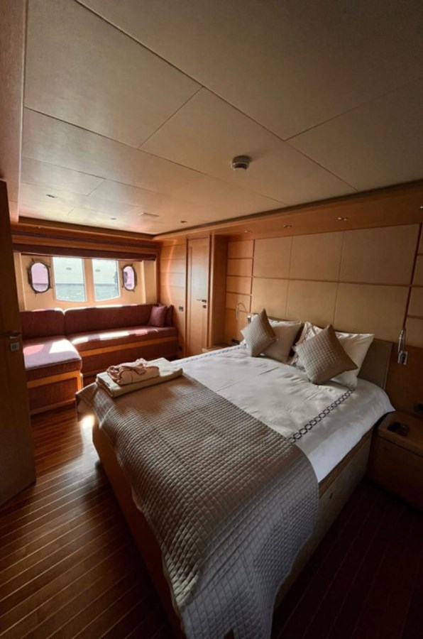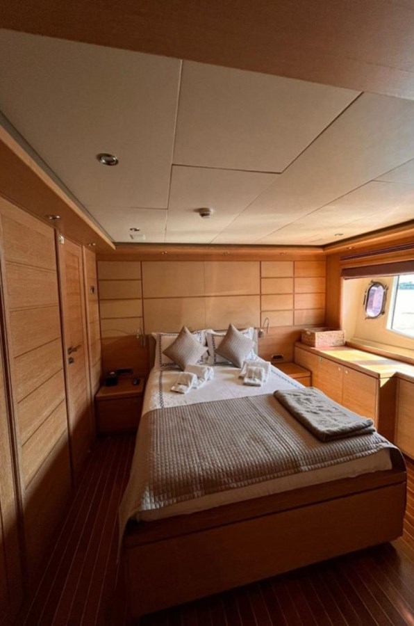 She accommodates 10 guests in 5 cabins, including two master suites, two VIP cabins, and one twin cabin, each with refined finishes and modern entertainment systems. Separate crew quarters ensure seamless service onboard.