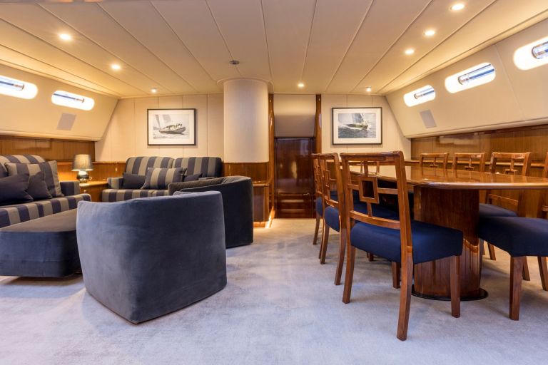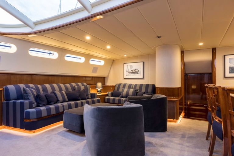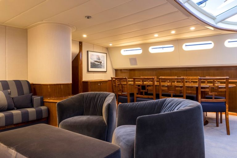 In 2021 MISS SILVER returned to Auckland for a comprehensive bow to stern refit. Her fully renewed interior now features fabulous joinery, new fabrics & furniture, top of the range AV / IT and a brand new galley. On the exterior she was painted, had her decks replaced and has new sails, helm stations, control systems and bright work.