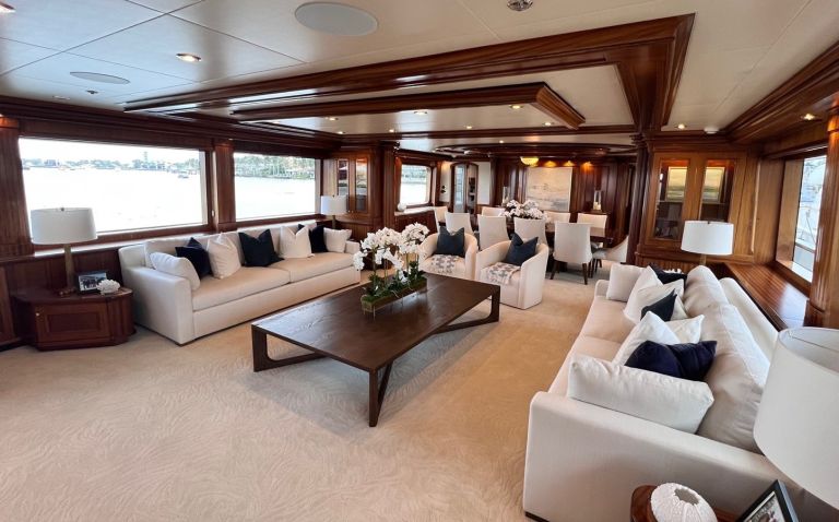 Her past and present owners have kept her well-maintained, undergoing refits between 2018 and 2023. A few of her upgrades include a new headliner, carpet, furniture, air conditioners, two generators, and many mechanical upgrades.