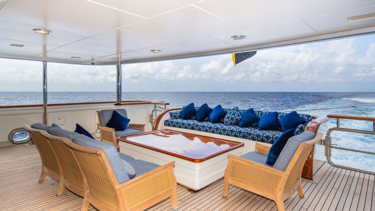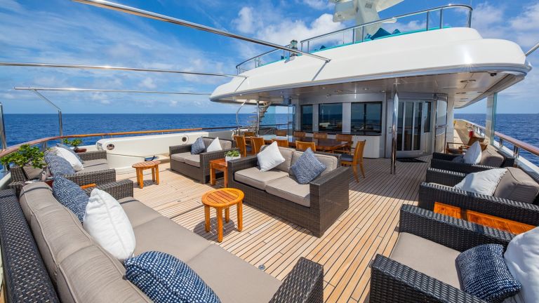 - Accommodations for up to 12 guests in 5 staterooms, including a full-beam master stateroom with an attached lounge/office