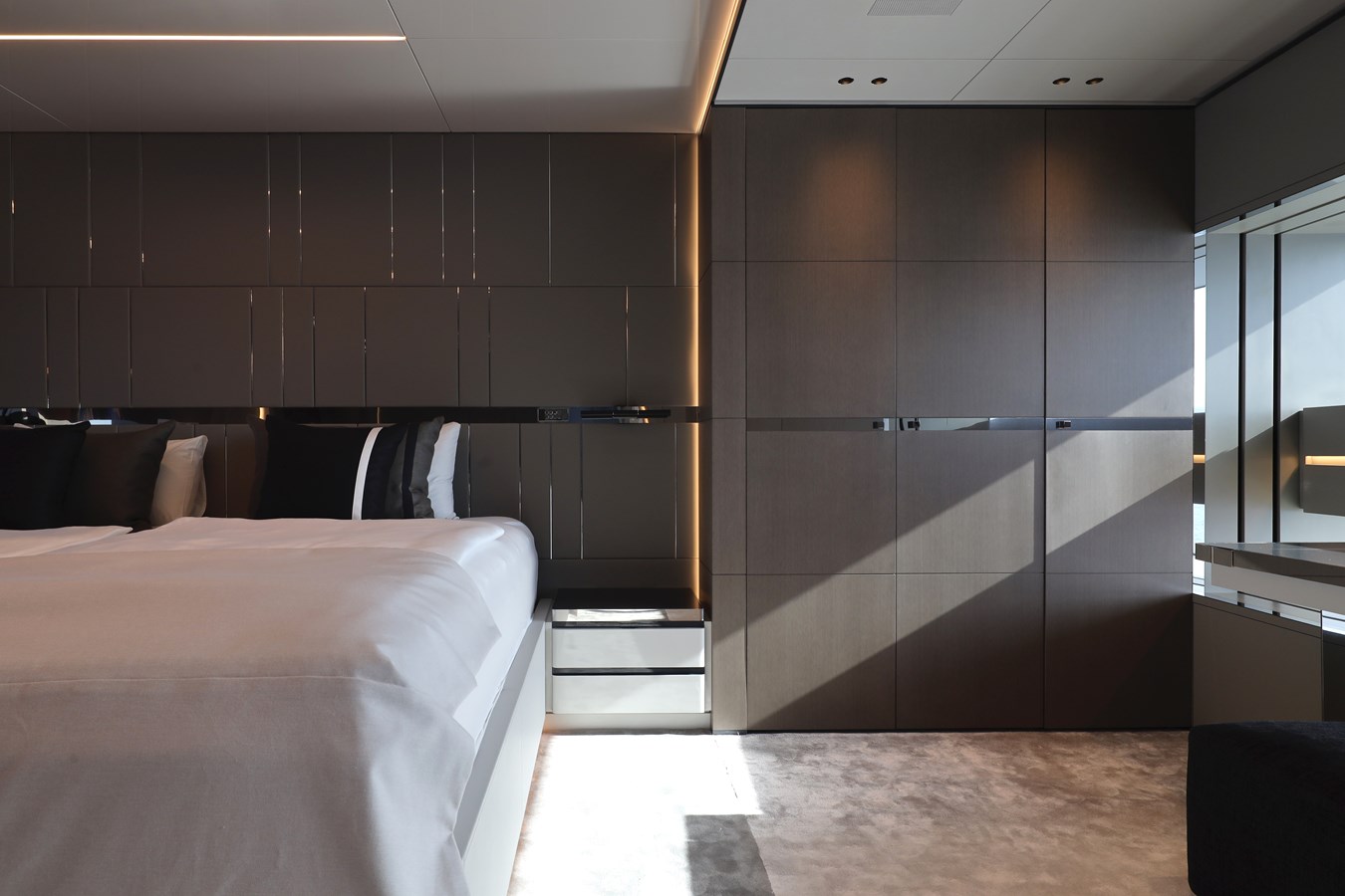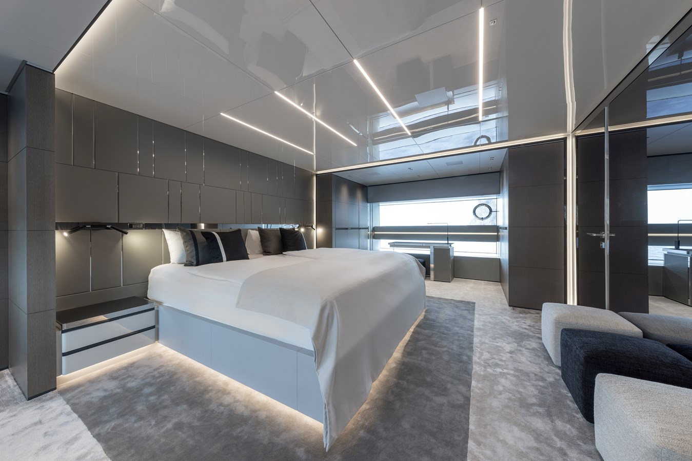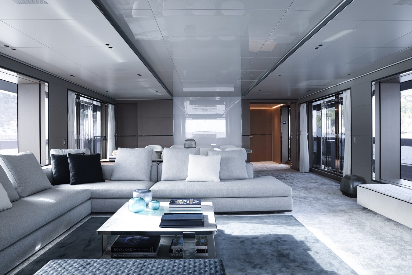A slender profile and sporty character with floor-to-ceiling windows designed by Enrico Gobbi – Team for Design matches her fast-displacement hull form and her overall design takes inspiration from the automotive world.