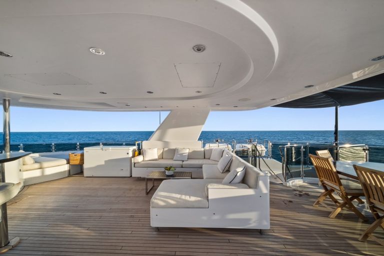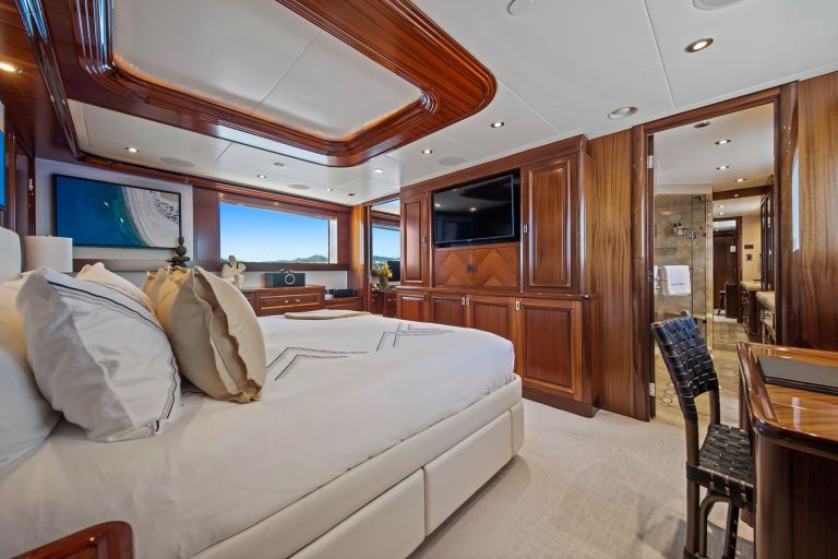 With five elegantly appointed guest cabins, RULE NO. 1 provides ample space to accommodate up to 12 guests for both weekend getaways and extended voyages. With an abundance of luxurious lounge areas, her expert design invites you to unwind and soak in your time on the water. On the sun deck, a jacuzzi offers the perfect vantage point for breathtaking views, while exercise equipment transforms the Portuguese deck into a private gym. For dining and entertaining, each of her three decks features its own bar and dining area, allowing guests to enjoy meals and drinks in whichever setting feels most inviting.