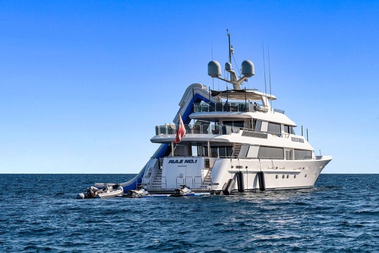 RULE NO.1 is accompanied by a 2022 37′ Freeman towed tender while chartered, a top of the line fishing boat. Fishing, spearfishing, freediving, and scuba gear are all available on board!