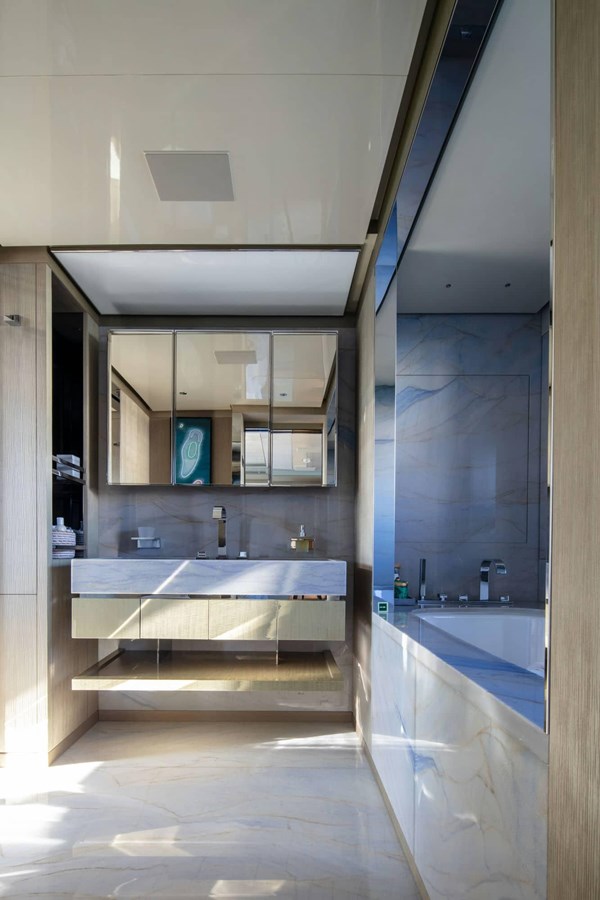 Her exterior lines and interior design exude timeless elegance. Constructed with a steel hull, aluminum superstructure, and finished with teak decks, she offers a perfect balance of durability and style. A hallmark of this model is the expansive aft deck—featuring a helipad and generous storage space for water toys and tenders.