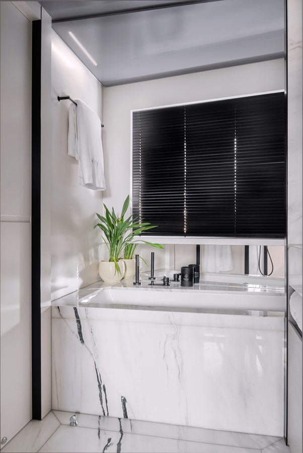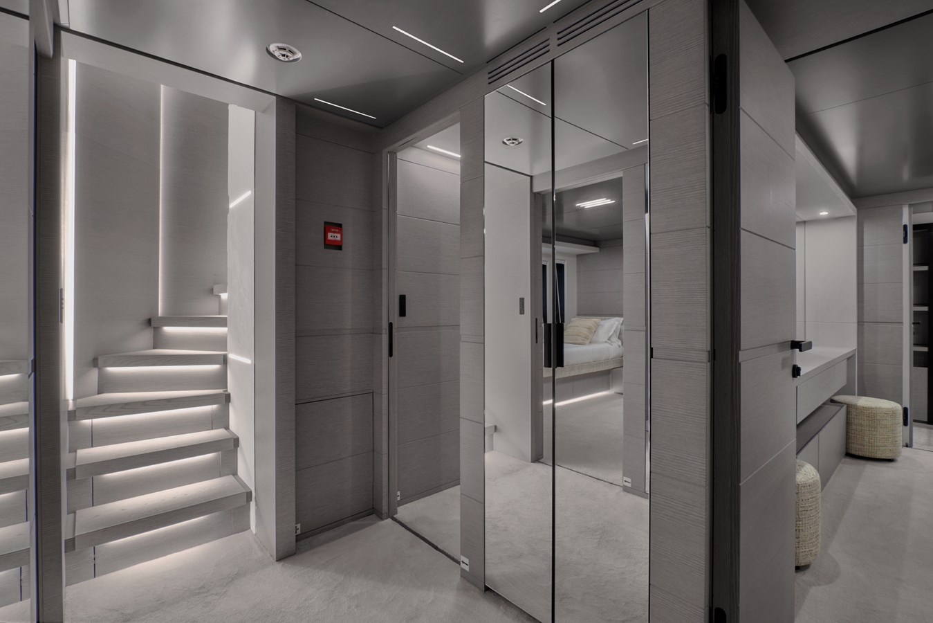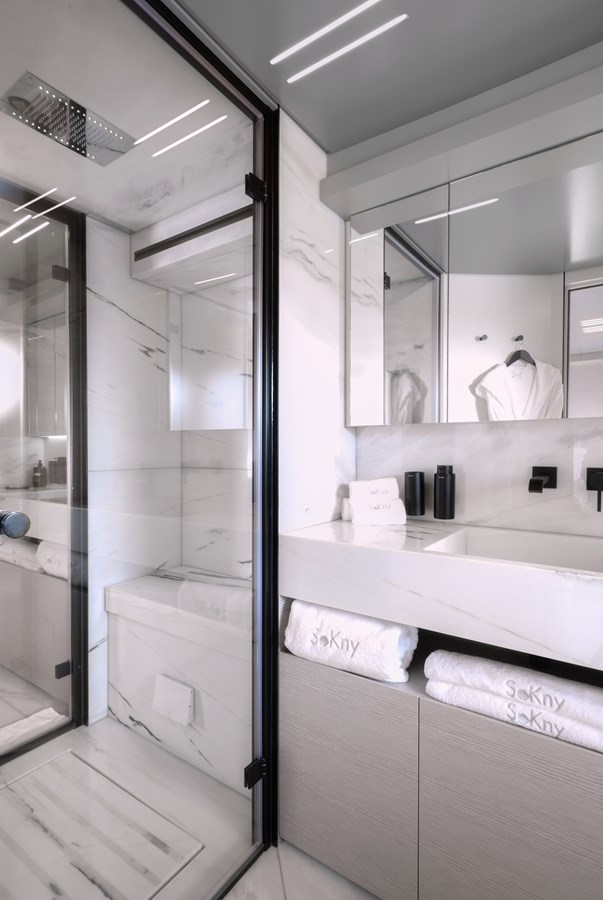 Always privately used and fully EU VAT paid, she has low engine hours. Designed by Zuccon International Project, and with stunning custom interiors, SOKNY has a sleek profile with a GRP hull and superstructure, powered by twin 1,400 Hp MAN diesel engines. She offers various relaxation and entertainment areas, including a sundeck with shaded seating, a fully equipped bar and a nice jacuzzi with sunbathing area, an upper deck with with a beautiful outdoor dining and sitting area in the aft and a further siting and sunbathing area at bow. The main deck offers a generous aft cockpit, connected to the aft fold-down swimming platform/beach area. The interior features a sky lounge and an open-plan main salon with a mix of rich wooden tones and soft, light colors, enhanced by large windows for natural light. SOKNY accommodates up to 11 guests in five cabins, including a full-beam Master suite, two double cabins, and two twin cabins, all with ensuites.
