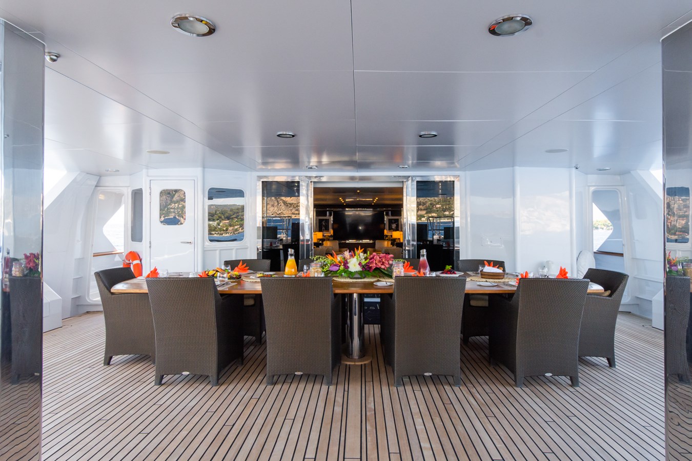 THE WELLESLEY boasts some of the largest open deck spaces of any 56 meter on the water, the ideal yacht for entertaining family and friends. She offers exterior dining on both the main and sun decks, as well as multiple sun-lounging and relaxation areas. The sundeck also features a sizeable jacuzzi, perfect for socialising but still private when docked in port.