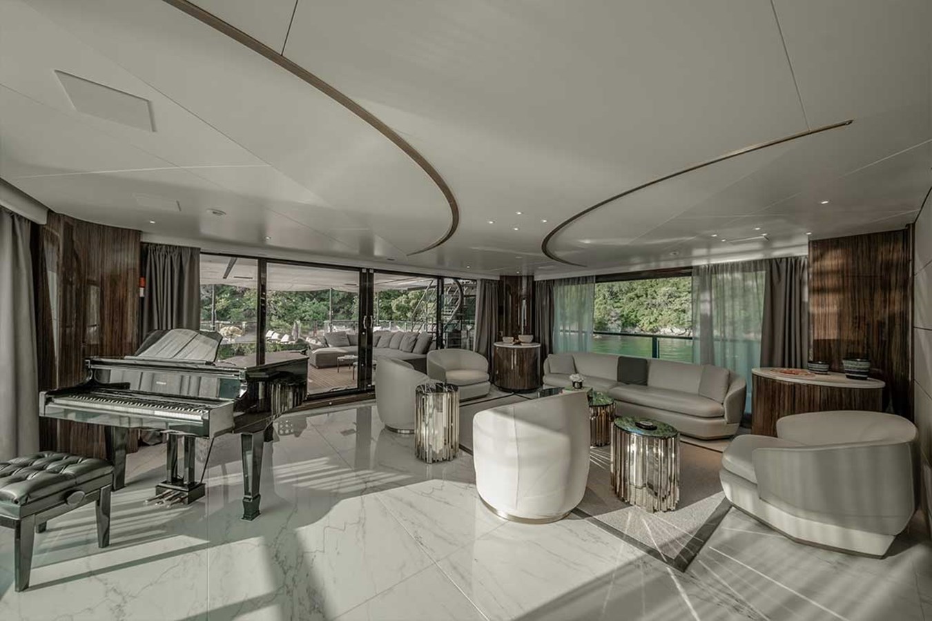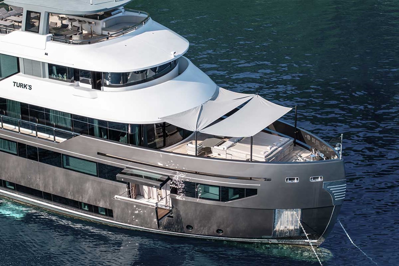 special grey painting to UV protected glazing all around the yacht, Eulithe