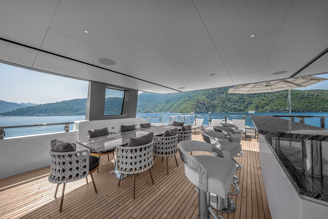bridge deck, garage for a 6.5 m tender and two full-size 300hp jet skis
