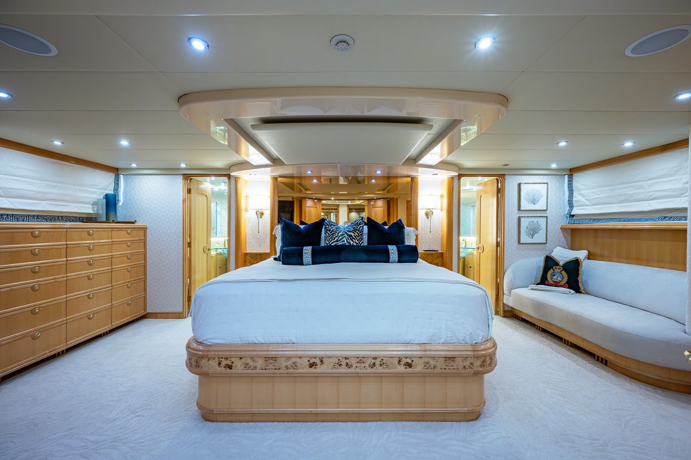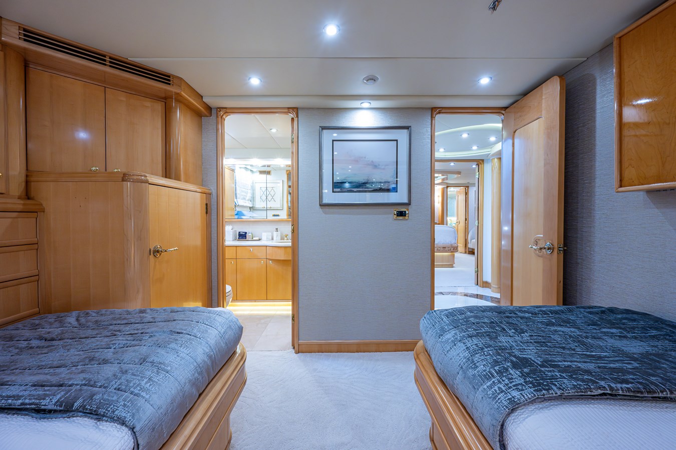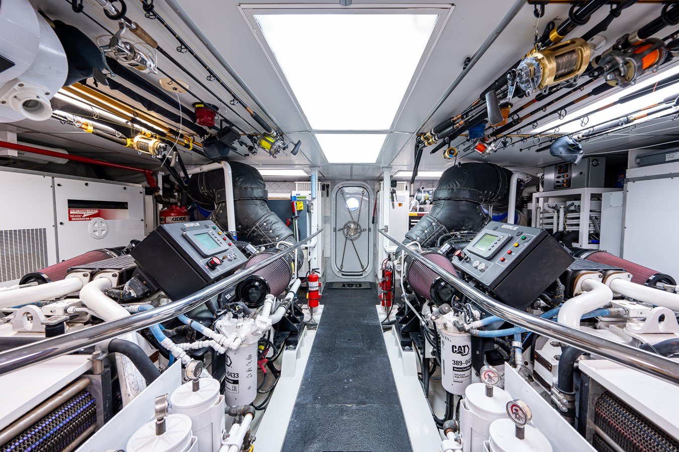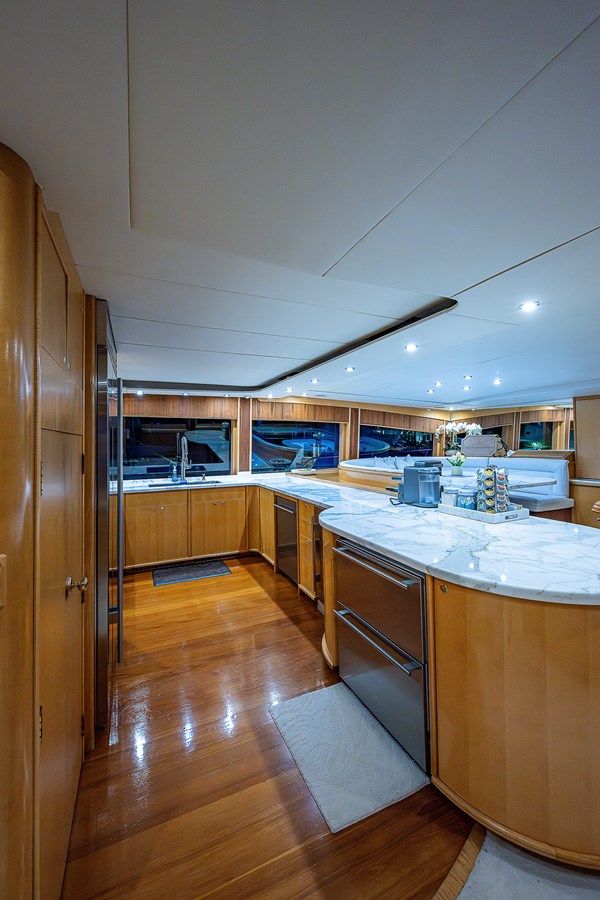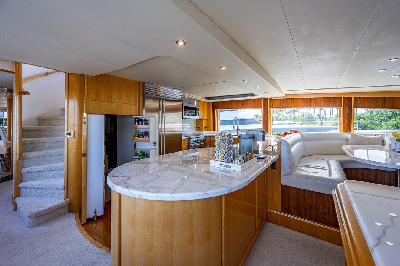 Her 25’ beam, 5 stateroom, walk-around side decks, country kitchen, replaced caterpillar engines, rebuilt generators, repainted exterior paint, all new appliances, new cushions and covers, complete engine services and almost every system upgraded or replaced by the last owner and current owner who spared no expense, makes this a truly turn key boat for an owner looking to go cruising without any fear of leaving the dock.