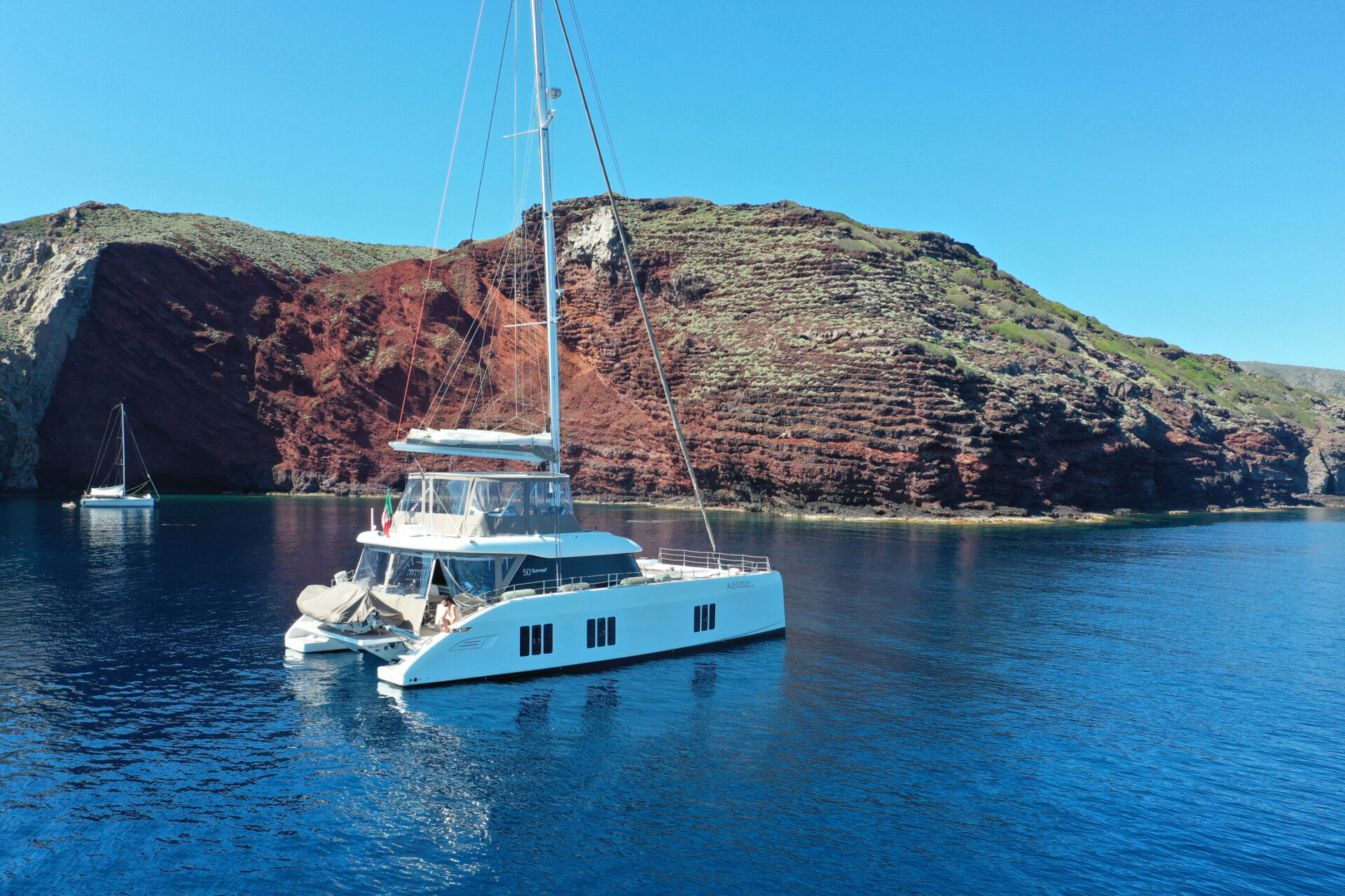 The Sunreef 50 is a compact and versatile sailing catamaran, perfectly suited for exclusive getaways, luxury charters and transoceanic cruising. Its smartly designed deck and superstructure elevate onboard comfort, while high freeboards and elegant lines give it a timeless aesthetic with a modern flair.