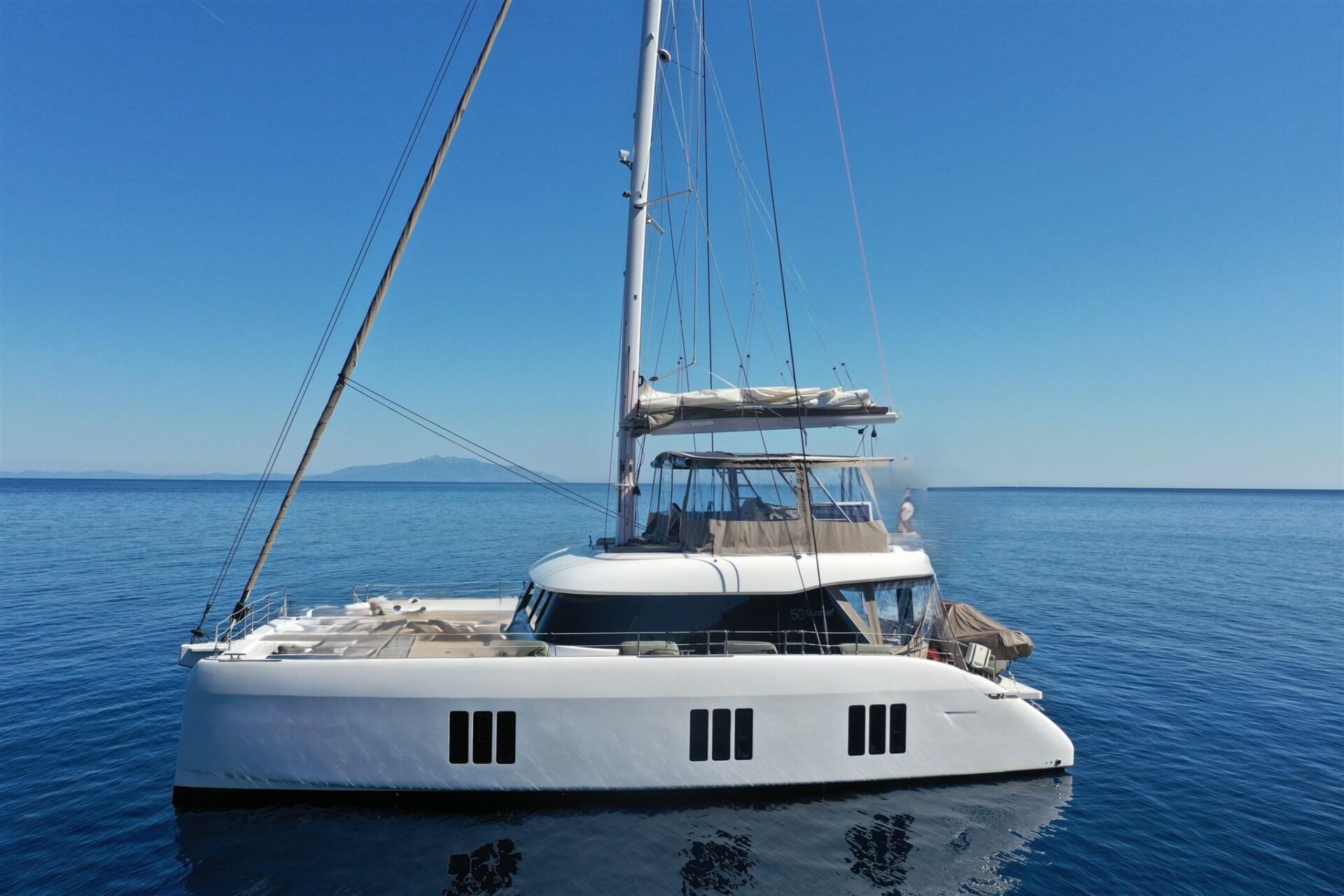 This particular Sunreef 50 is in like-new condition, with only one private owner and no charter history. It features a custom interior layout and is equipped with provisions for Small Commercial Vessel compliance, including a fire extinguishing system with smoke detectors in every cabin and the engine room, plus an external manual shut-off in the cockpit.